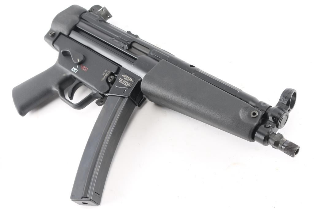 German semiautomatic pistol imported by HK Inc, Columbus GA. Features matte black finish, black polymer furniture, 9" 3-lug barrel, threaded muzzle with thread protector cap, protected post front sight, adjustable drum rear sight, ambidextrous manual safety, sling swivels. Overall condition is like new. Includes (2) 30 rd magazines, high quality HK logo cordura nylon carry case, factory cardboard box, manual.
