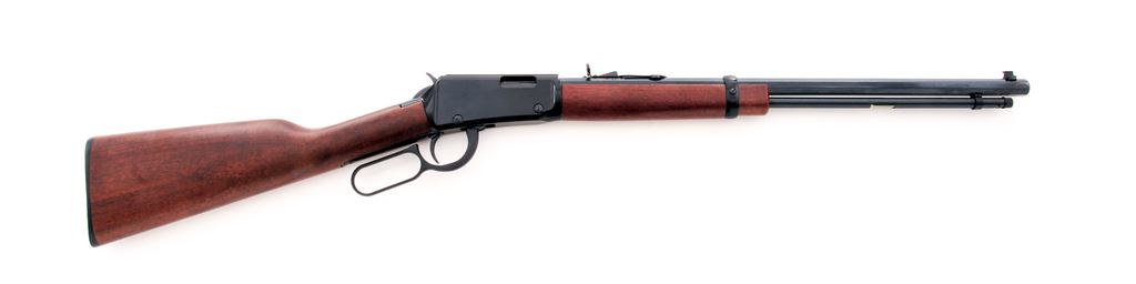 Henry Model H001T Lever Action Rifle, #T097788H, .22 S-L-LR cal., 20'' octagon barrel, dark blue finish, straight grip wood stock, factory buttplate, dovetailed front sight with brass bead, semi-buckhorn rear sight, with a factory grooved receiver. In original box with matching end label, owner's manual, and hang tags. Rifle is in excellent as new overall condition, the receiver with a few slight handling marks. Action and bore both rate as excellent; possibly unfired since leaving the factory. Est.: $250-$350. (Modern)