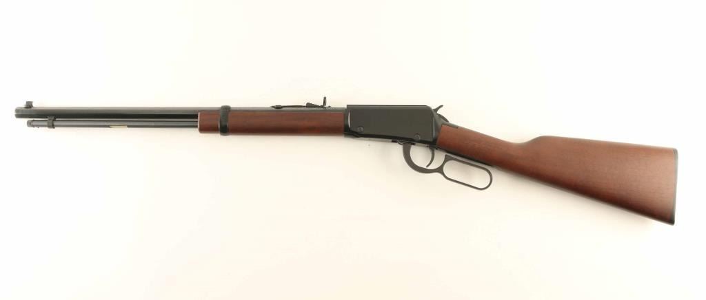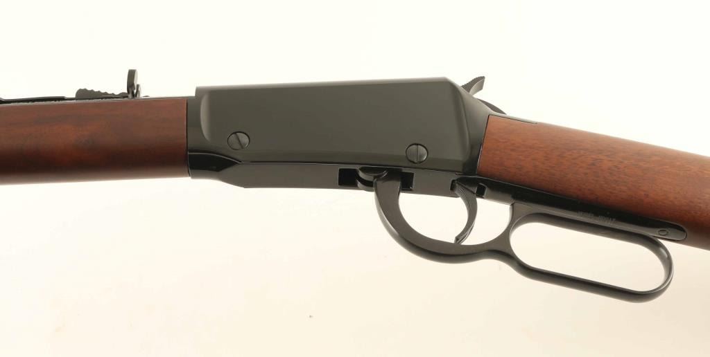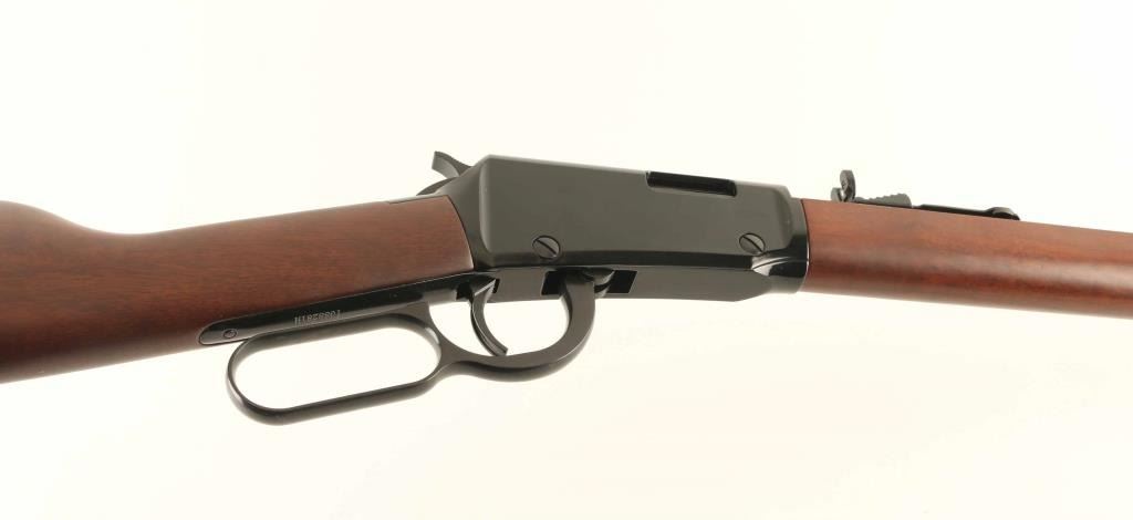 Lever action rimfire rifle features blued finish, plain wood stock & forend, 20" octagonal barrel with full length magazine tube underneath, buckhorn style sights. Bore is excellent. Overall external condition is excellent, almost like new, with few visible signs of handling and use. Includes factory cardboard box and manual. Condition is NRA Excellent *** Modern Firearm ***