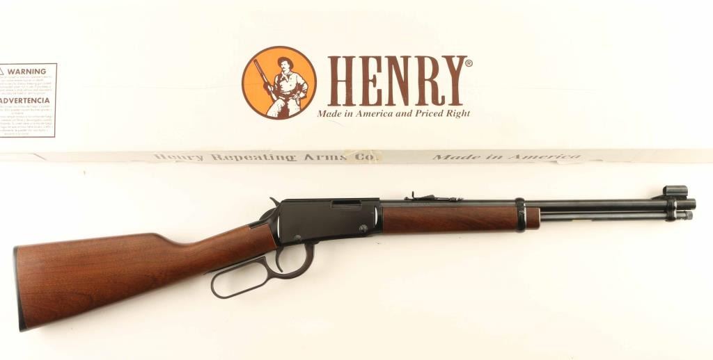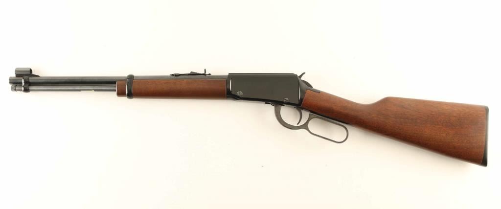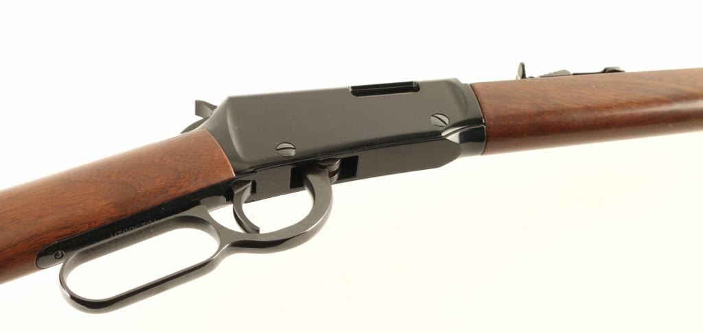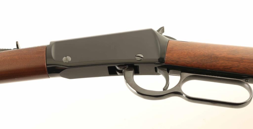 SN: Y025602H Lever action "Youth Model" rimfire rifle features blued finish, wood stock & forend, 16" barrel, magazine tube under barrel, buckhorn sights with hooded white dot front blade and vertical white stripe rear, 13" length of pull. Bore is excellent. Overall condition is almost like new with few signs of handling. Includes factory cardboard box with manual & cable lock. Condition is Excellent *** Modern Firearm ***
