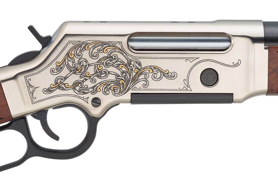 Henry's Deluxe Long Ranger rifles center around an eye-catching lightweight alloy receiver plated with highly polished nickel under beautifully executed scroll engraving on both side flats and lightly accented with 24K gold inlay. For truck, saddle, or tree stand, take your next hunt up a notch, and never forget that there's a true Henry workhorse inside these show ponies.