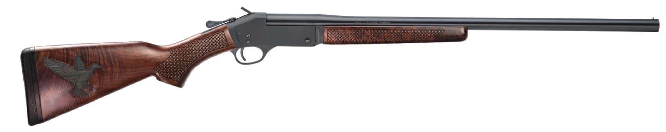 This DU exclusive shotgun features a detailed engraving of a duck in flight on the buttstock and a unique lattice checkering pattern on the buttstock and forend. Chambered for 3” 20 gauge shells and threaded for removable choke tubes.