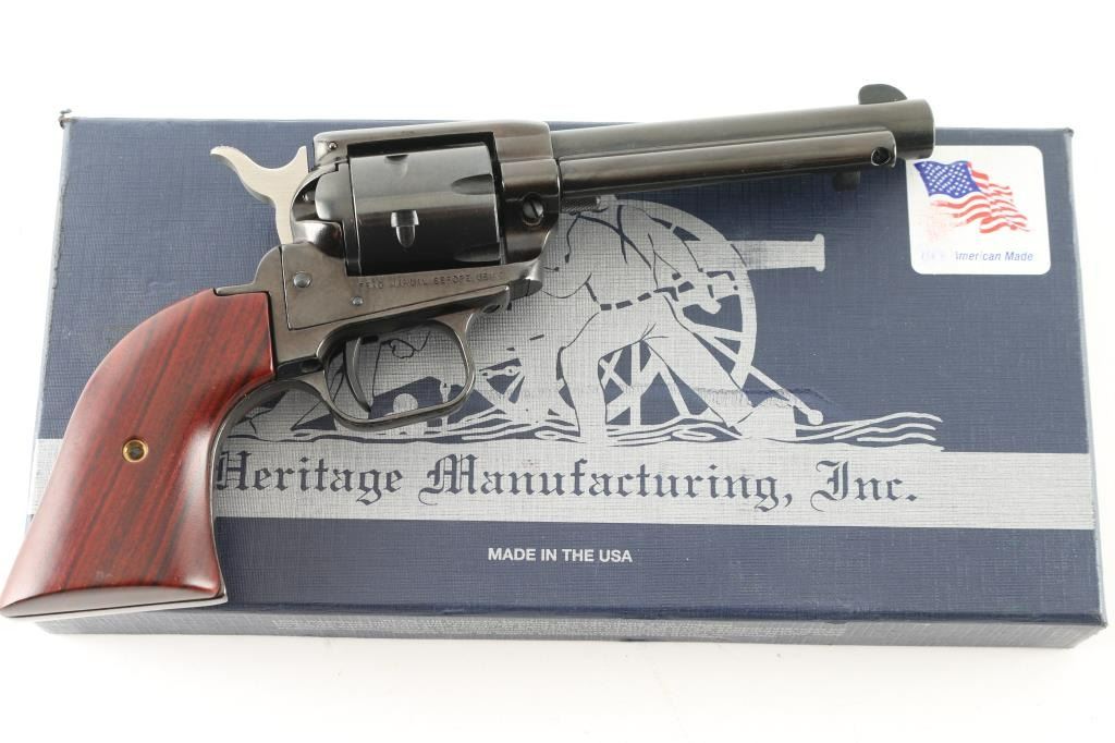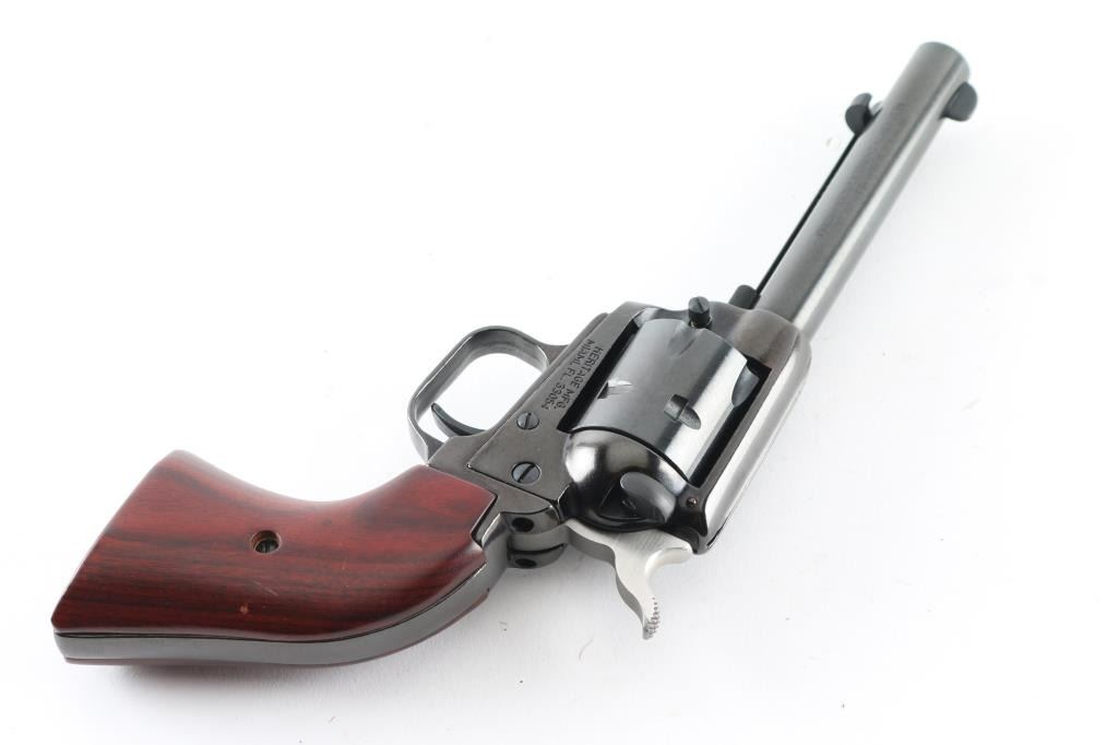 Blued steel single action revolver features a 4.75" barrel, fixed sights, manual safety. Bore is very good condition. Wood grips are in excellent condition. Comes with original cardboard box, owners manual and both cylinders(.22 LR & .22 Mag) Condition is NRA Excellent *Modern Firearm*