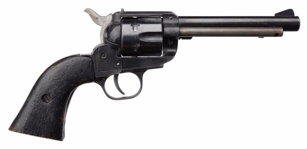 **Herter’s copy of a SAA revolver, .22LR caliber, 5” barrel, S/N 52998, black finish, replaced wood grips in overall good condition with working action. Est.: $125-$175.