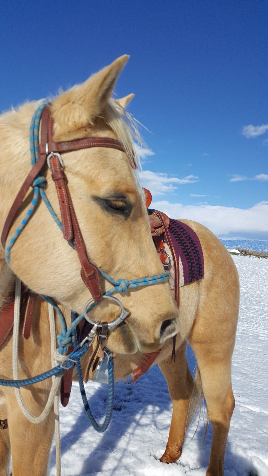 Teddy is a Golden Retreiver stuck in a horse's body! This adorable gelding is so fun to be around, and is the most forgiving, patient, and kind individual. Teddy is always his same happy, laid-back self regardless of where he goes, what he's doing or who he's around. I joke that Teddy was born broke, even during his first ride as a two year old he acted like he been doing it his entire life. He saddles up with no hump, buck or tightness even on the coldest of mornings or after time off. Teddy knows his leads, lopes nice circles, sidepasses, pivots, is a pro at opening and closing gates, and even sidepasses over to pick up his rider and make mounting a breeze. You can rope off of him, work cattle, carry flags, pony colts, ride him in the mountains, or drag a sled full of kids through the snow. Because of his fantastic temperment, Teddy would make an excellent all-around family horse. Visit his website http://skogenbarnettehorses.wixsite.com/teddy and check back often as we will be adding more info, pictures and videos right up until sale day.