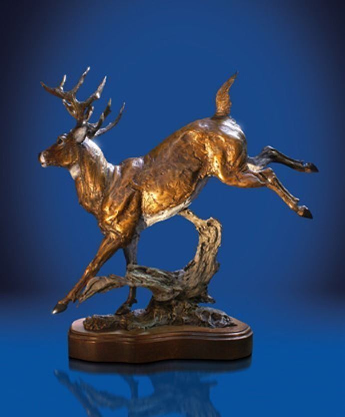 Ghiglieri. Lorenzo noticed a buck one day out on his property and sat and watched it for a time. He saw the elegance and knew that he had to re-create this moment, but needed the perfect instance. The buck was done with the area and as Lorenzo watched him leave, the buck leapt over a fallen tree, and Lorenzo knew he had caught the perfect moment.