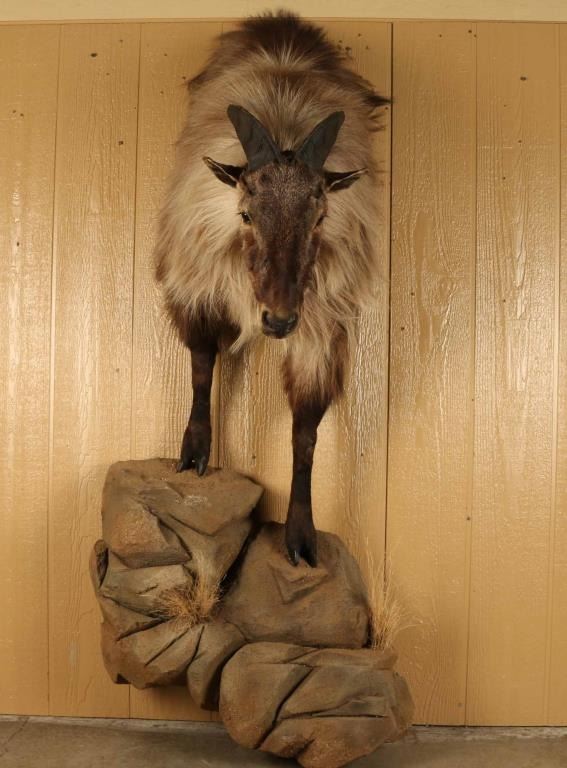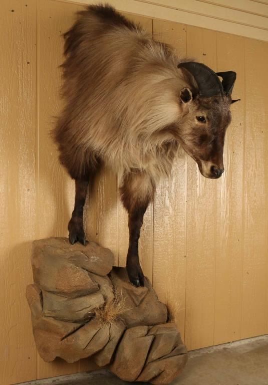 Wonderfully done half mount on faux rock base. Measures 32" from the wall and has a 7.5" spread. No visible damage and mount is in excellent condition.
