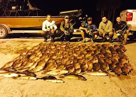 Come take part in one of the fastest growing ports in the hunting industry, bow fishing. Don’t worry if you have never shot a bow before, with a quick training session anyone can sticking fish. Take a ride on the custom air-boat surrounded by LED lights that light up the night and enjoy true Florida wildlife. We target tilapia, an invasive fish not native to our freshwater lakes. Expect to literally take hundreds of shots on an average night. Besides tilapia, other species of fish are the needle nose gar, bowfin, catfish, and freshwater mullet.