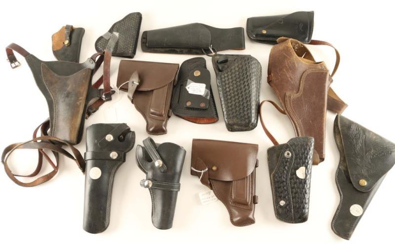 Brown and black leather, various types and sizes. 15 total.