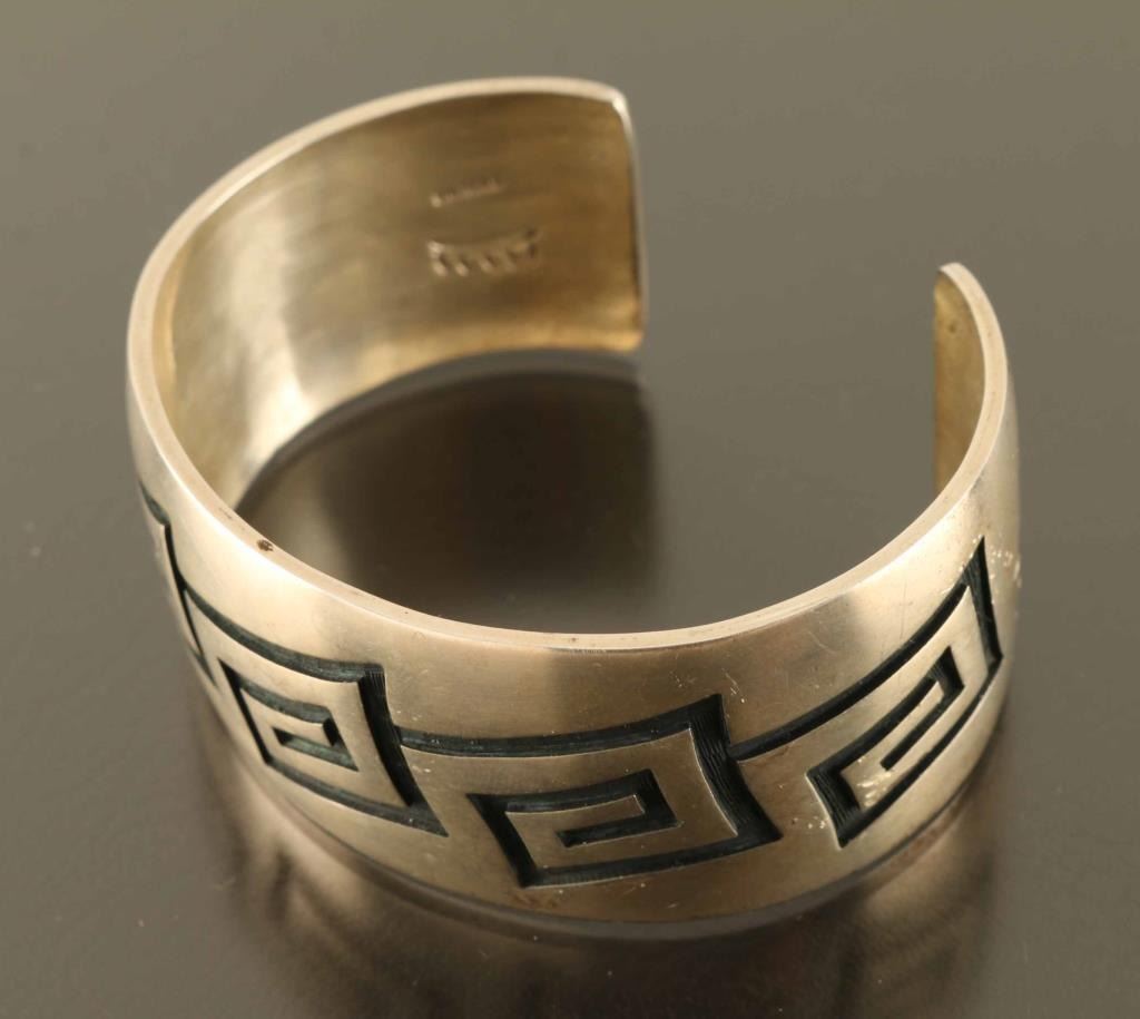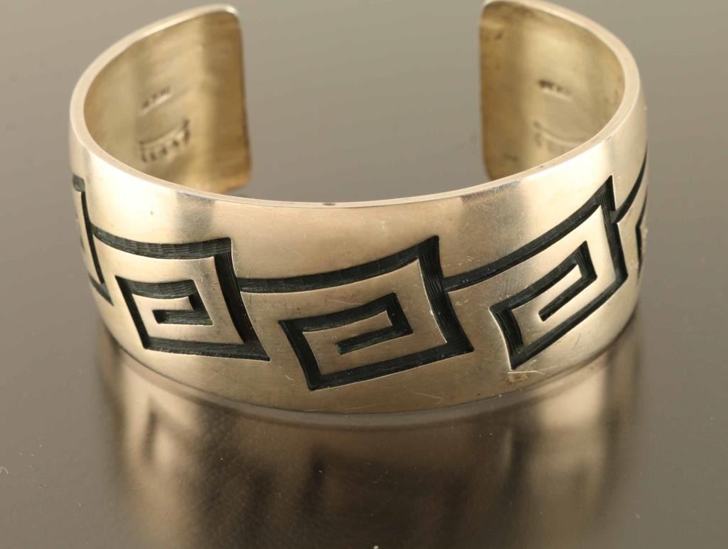 made and marked by Riley Polyuaptea has and a geometric design. From The Spike Flanders Collection Silver City New Mexico.