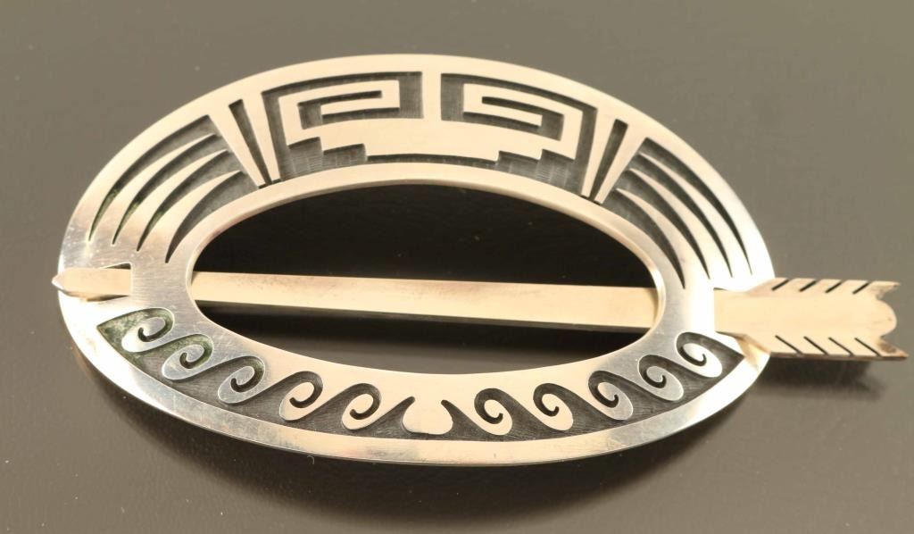 maker marked by Hopicrafts beautiful geometric design with arrow shaped pin. From the Spike Flanders collection Silver City NM.