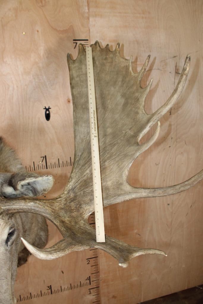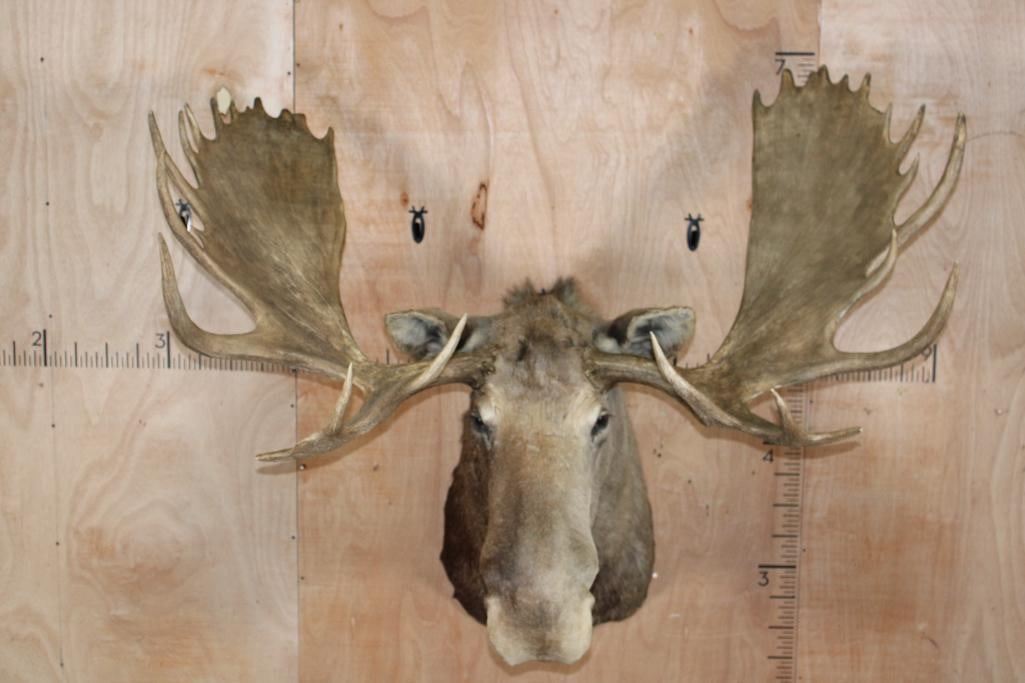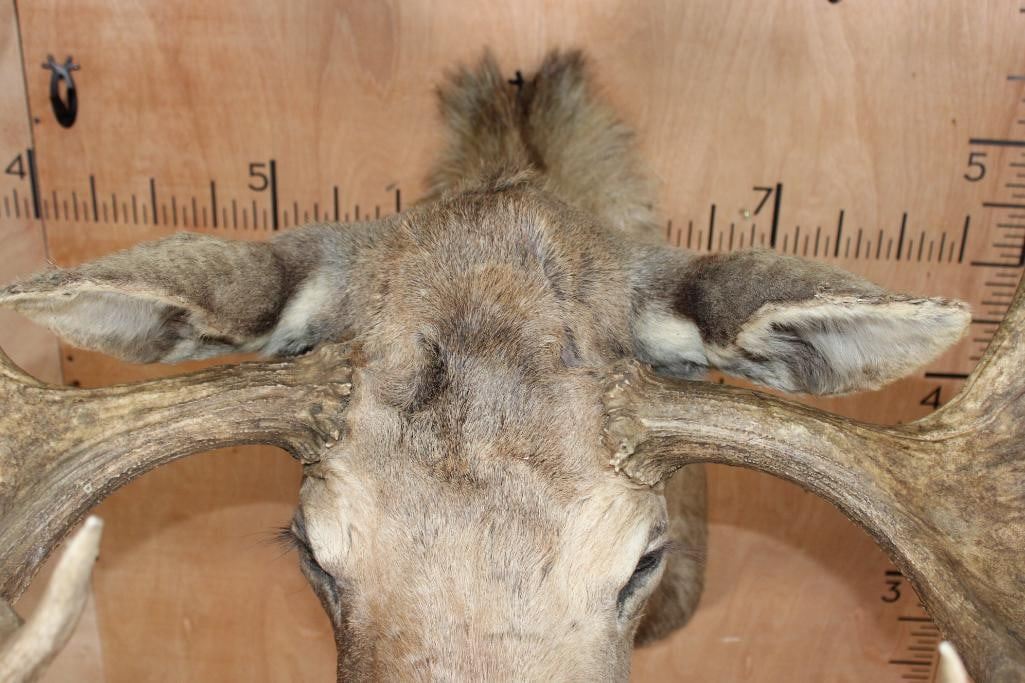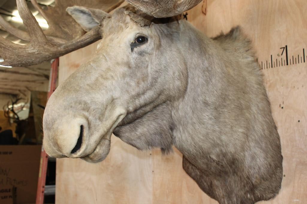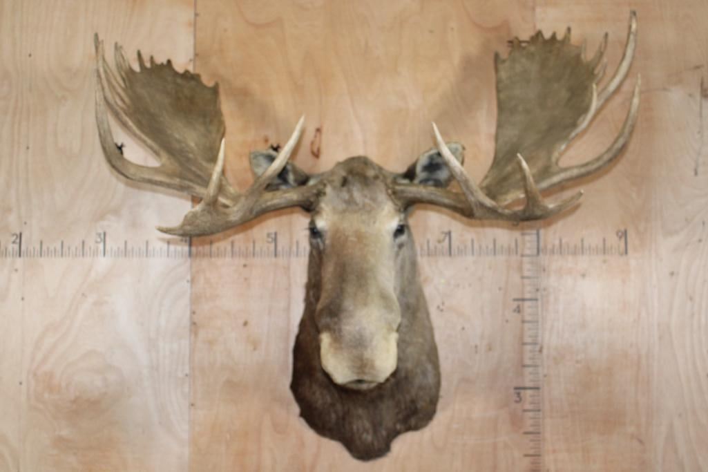 Huge 28-Point MOOSE Shoulder Mount with a 61" Spread. This is an older mount with minor left ear damage, otherwise it is in Good Condition. TAXIDERMY