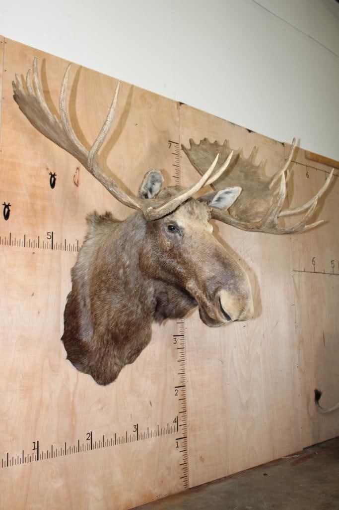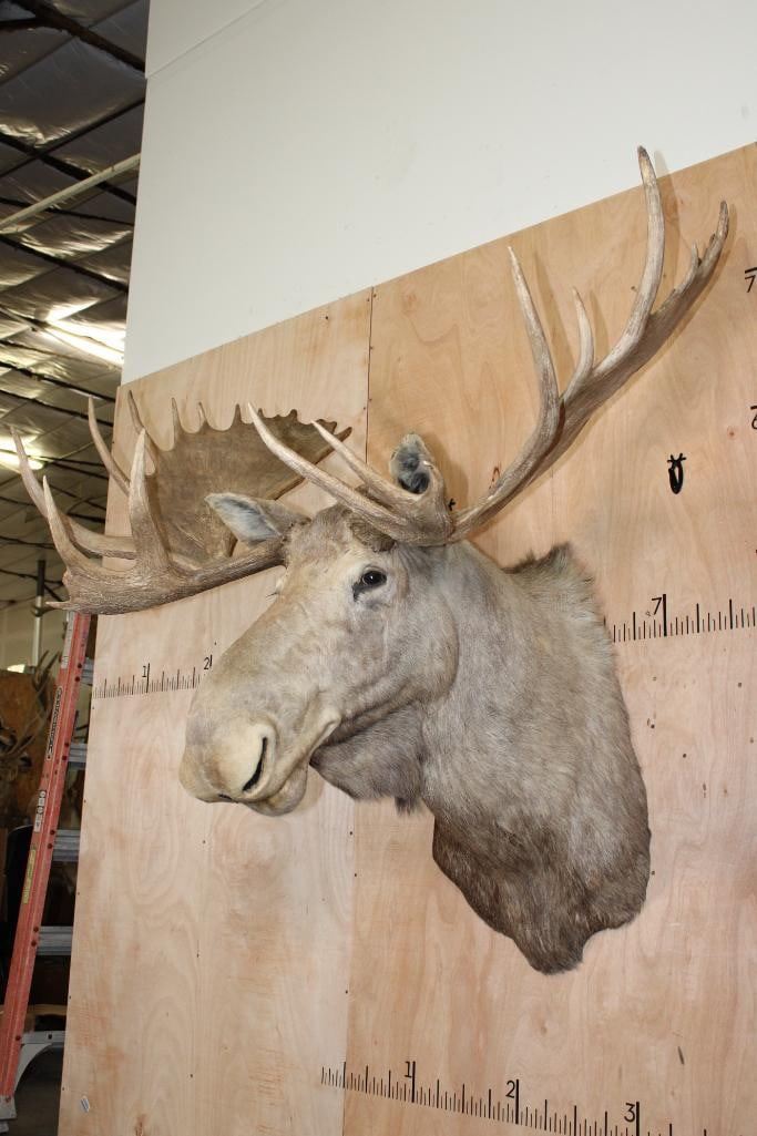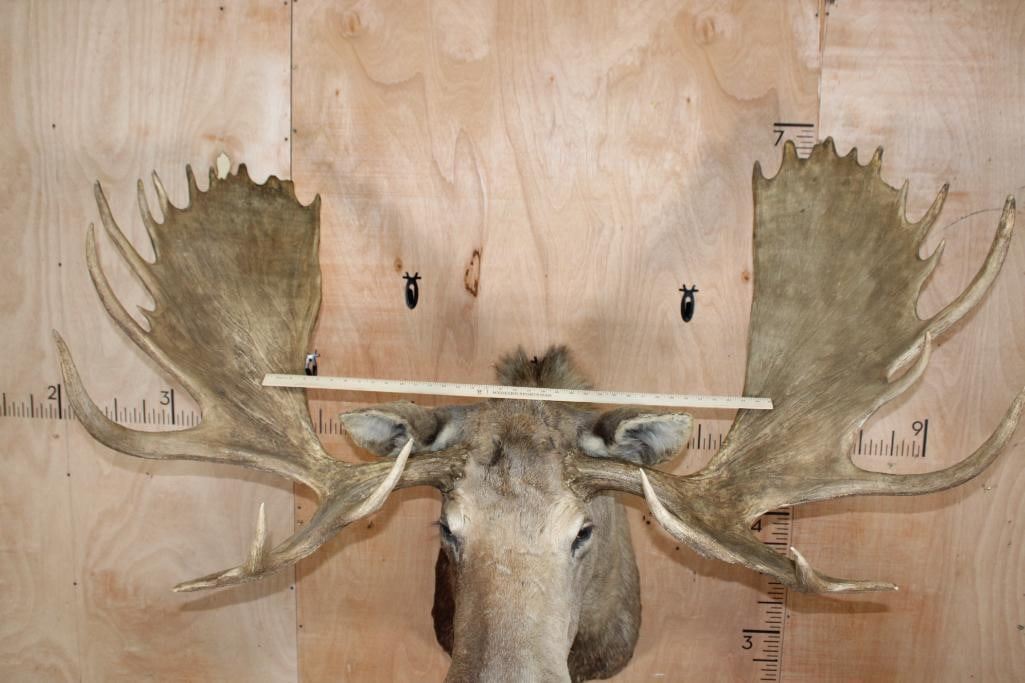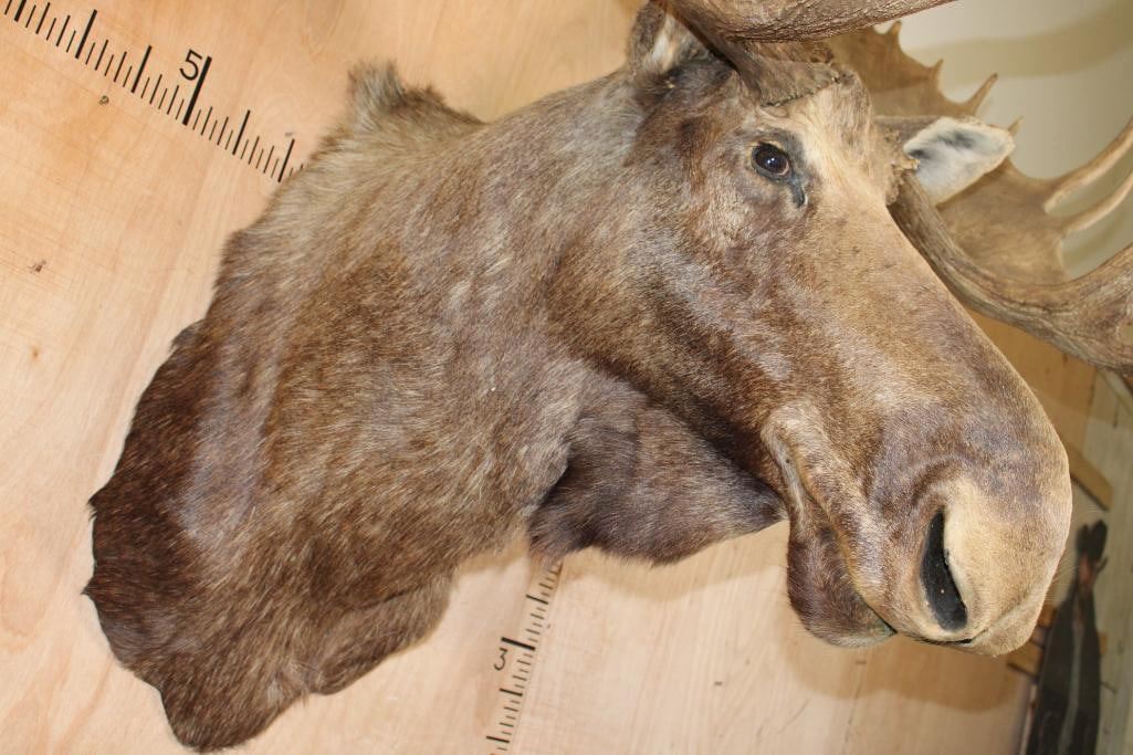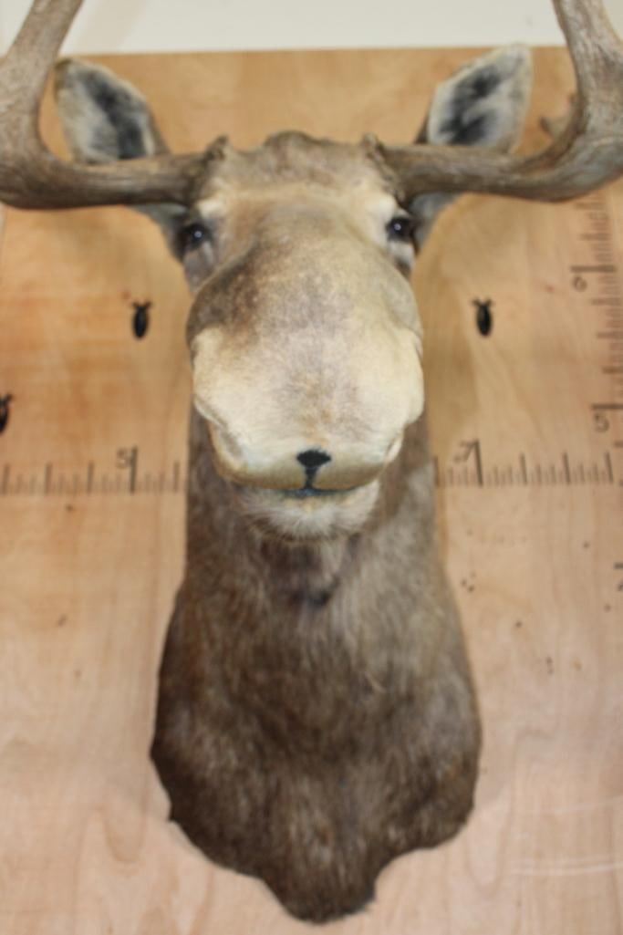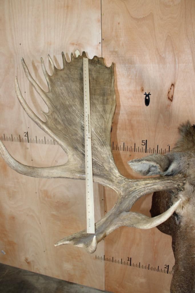 Huge 28-Point MOOSE Shoulder Mount with a 61" Spread. This is an older mount with minor left ear damage, otherwise it is in Good Condition. TAXIDERMY