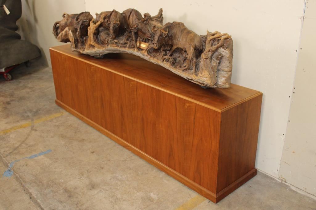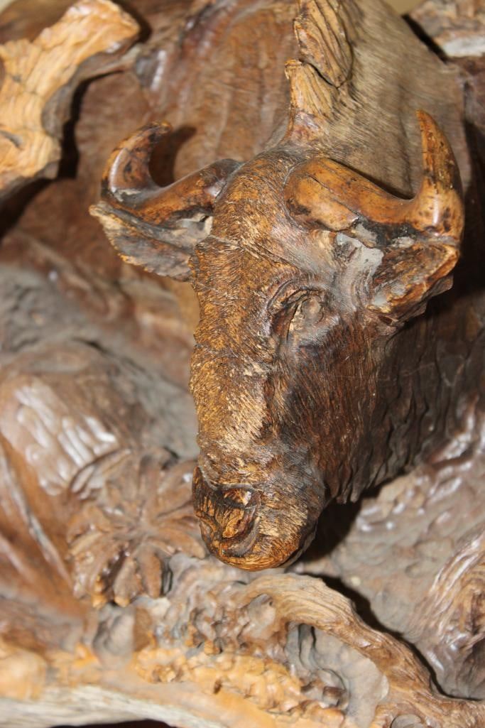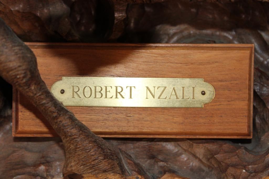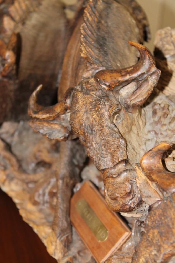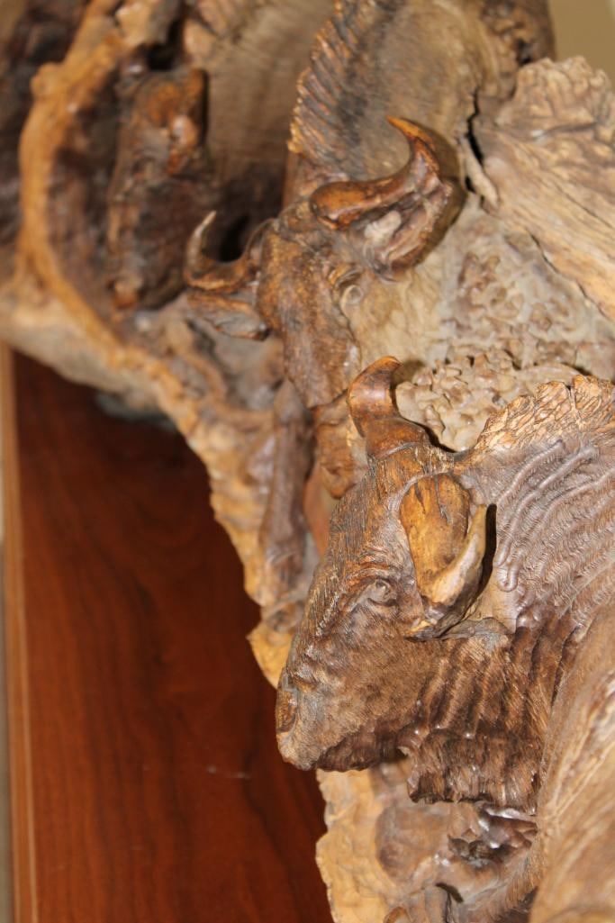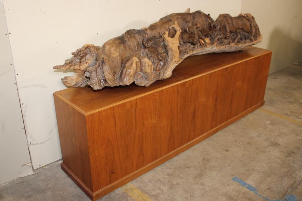 Huge Original Hand-carved Leadwood Sculpture of WILDEBEESTS by African artist Robert Nzali. It has been masterfully carved from a single piece of Leadwood. The sculpture measures 82.5" Long x 18" Wide x 17.25" Tall. It has been mounted on a rectangular Wooden Base that measures 85" Long x 17" Wide x 24.5" Tall. The Total Mount measures 41" Tall. The sculpture is removable from the Base. COLLECTIBLE AFRICAN ART AND SCULPTURES