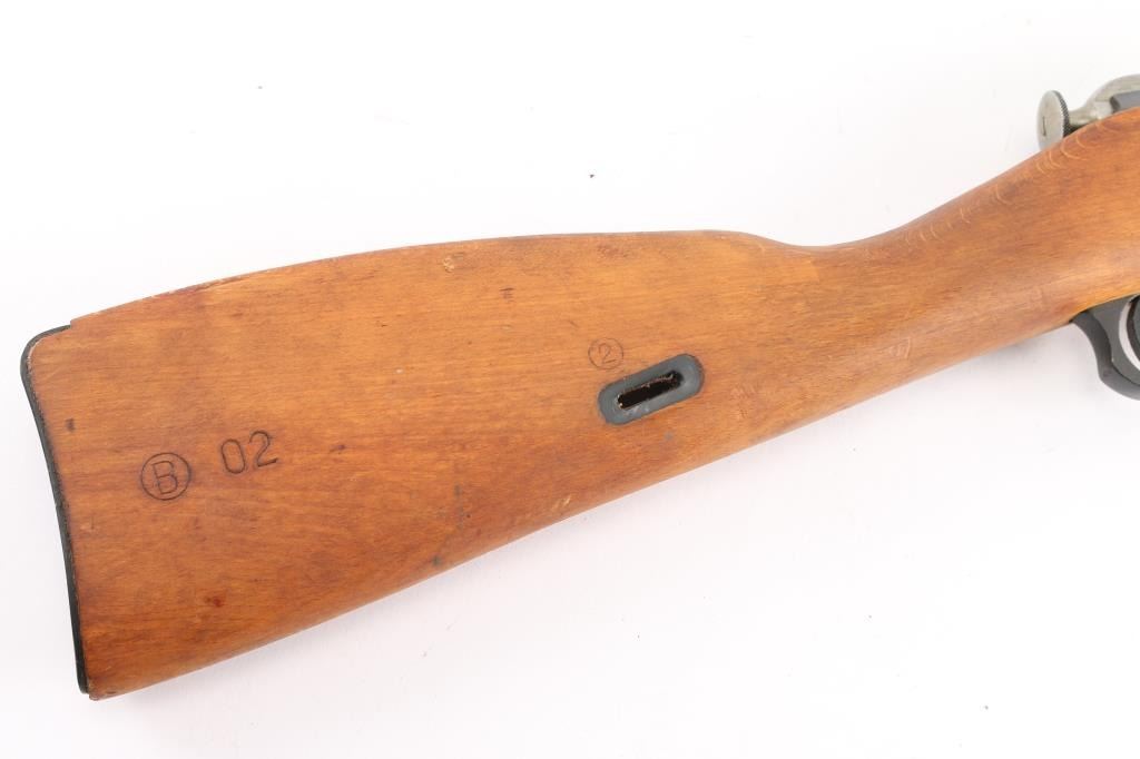GOOD: Some minor replacement parts; metal smoothly rusted or lightly pitted in places, cleaned or re-blued; principal letters, numerals and design on metal legible; wood refinished, scratched bruised or minor cracks repaired; in good working order.