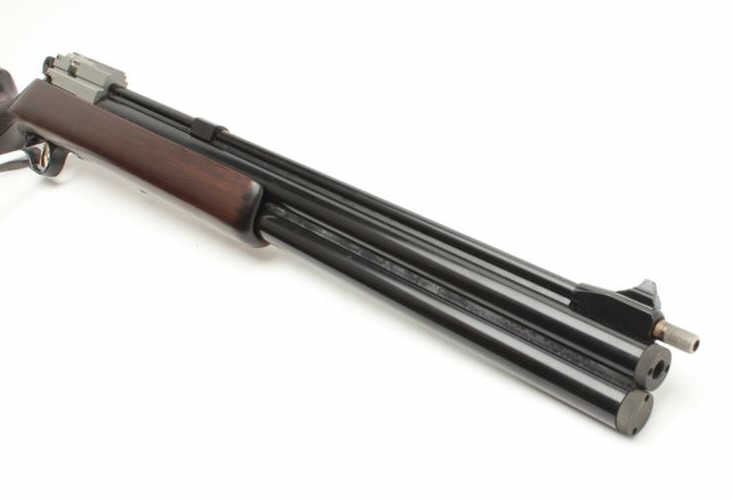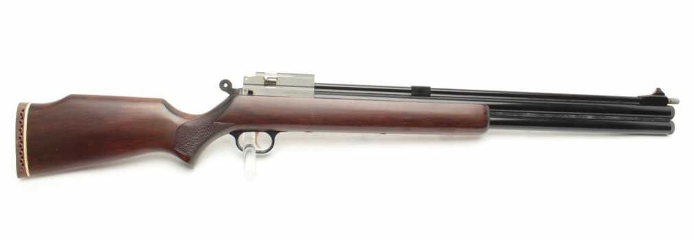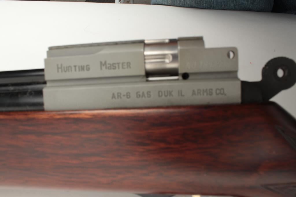Hunting Master AR 8 pellet rifle, .22 caliber, 27” barrel, checkered wood stock, S/N 1852998, appears in overall very good condition. Heavy construction, rotating chamber, working action. Est.:$100-$200.