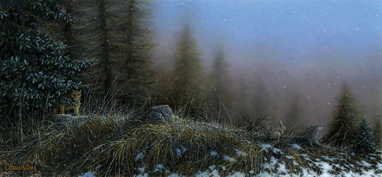 Hunting the High Country captures this wild beauty and brutal grace in vivid oil painting by Clausnitzer, inviting you to witness a moment suspended in the untamed wilderness. Let yourself be drawn in—breathe the mountain air, feel the pulse of the wild, and marvel at the elegant balance of nature.
