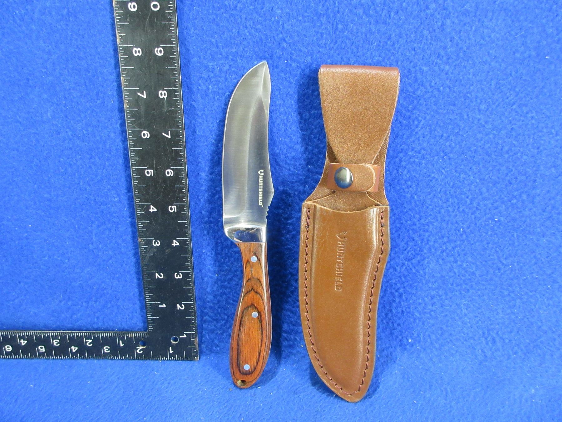 Huntshield Fixed Blade Knife with Leather Sheath - Appears Unused