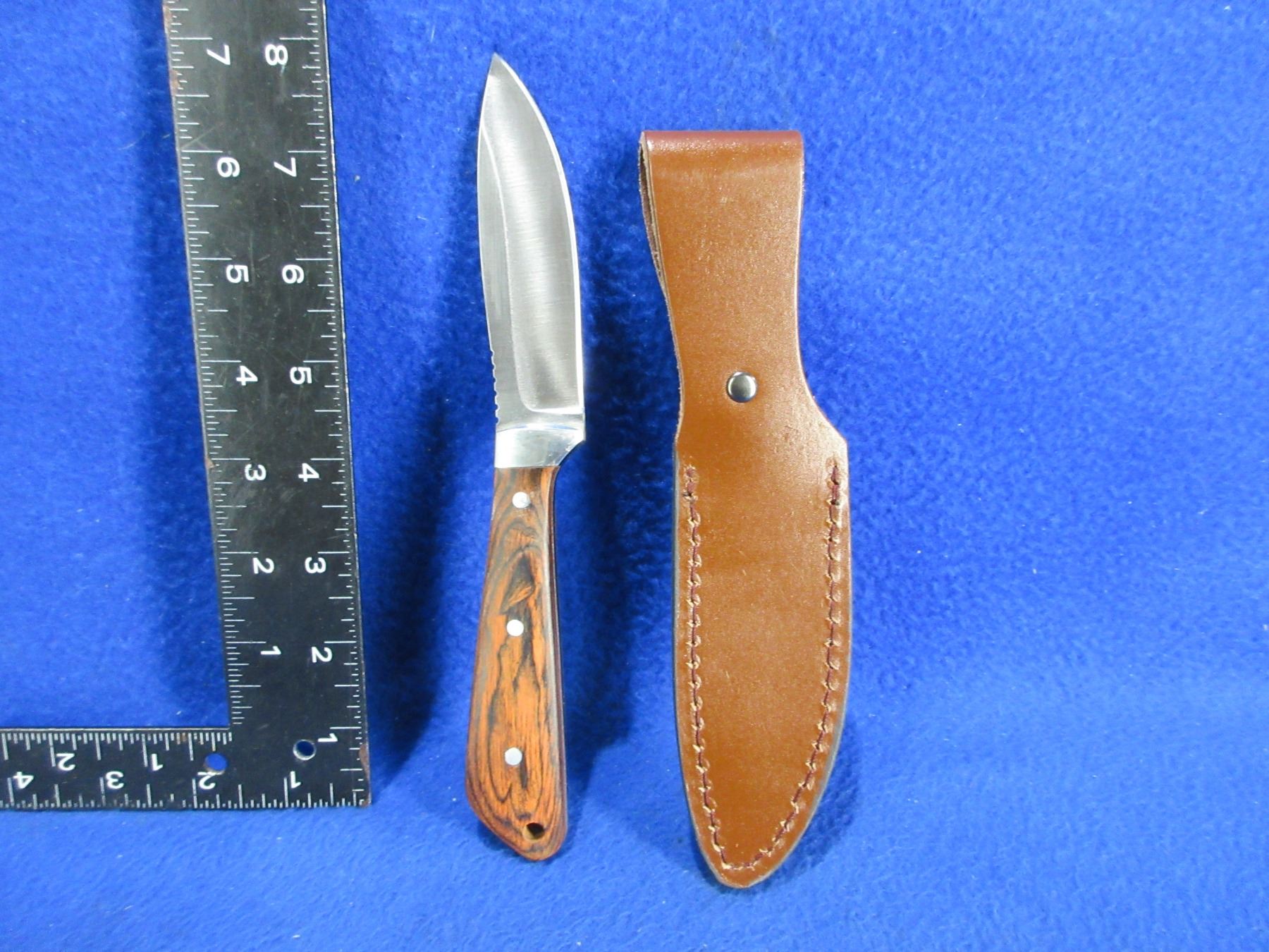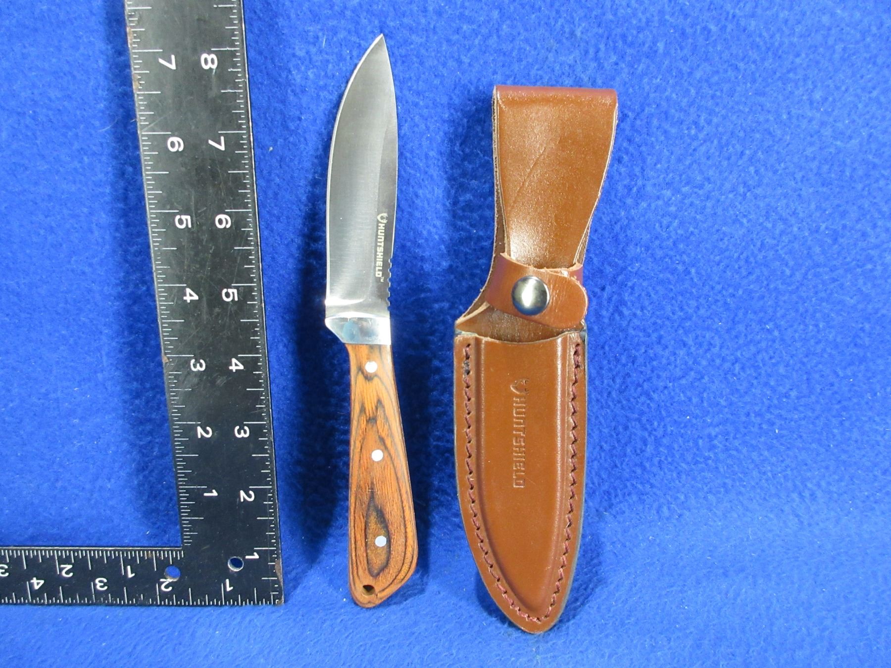 Huntshield Fixed Blade Knife with Leather Sheath - 3 3/4" Blade - Appears Unused