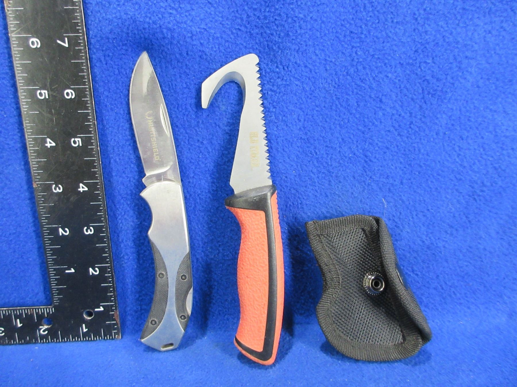 Huntshield Folding Lock Blade Knife (2 3/4" Blade) & Schrade Oldtimer Gut Hook Bone Saw with Sheath (2 3/4" Blade)