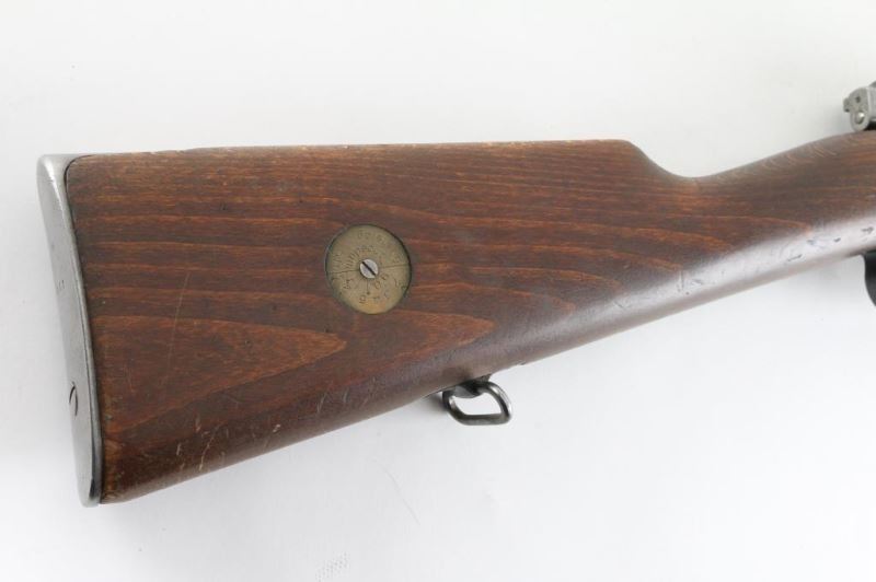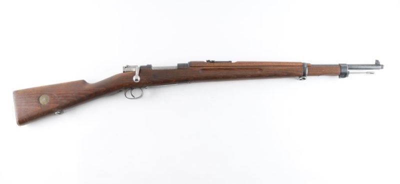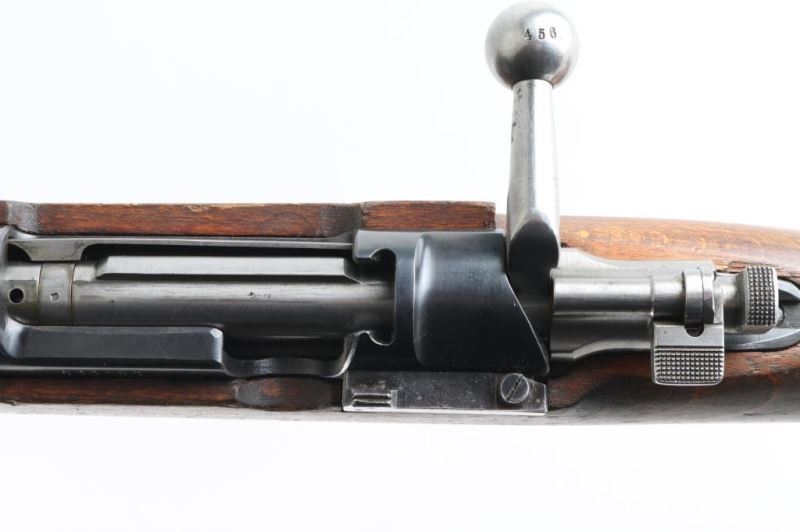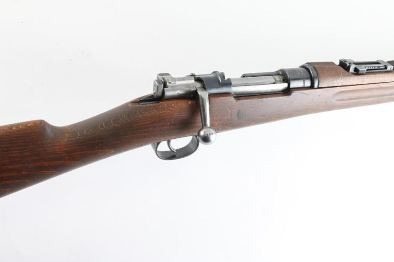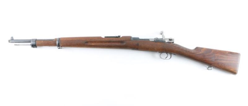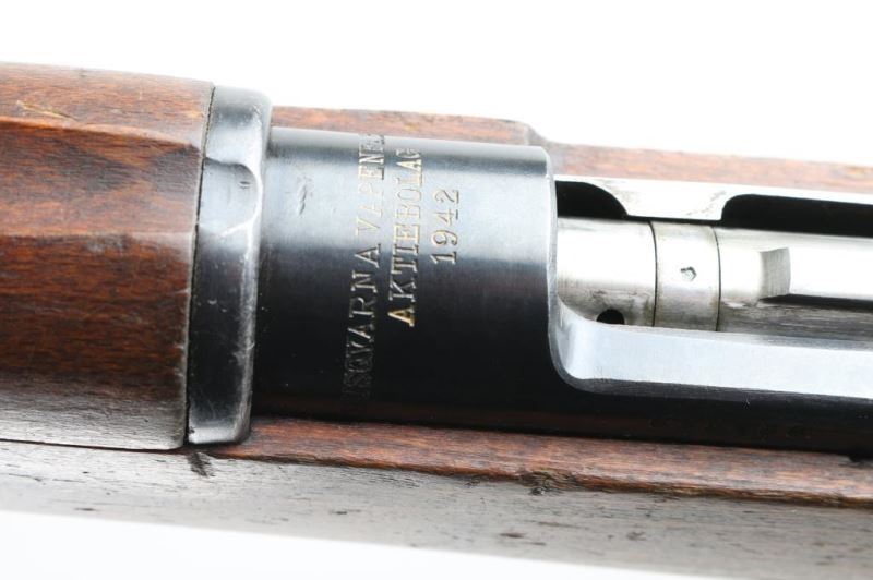 Swedish bolt action military rifle imported by KBI, Harrisburg PA. Features blued finish, 23-3/4" barrel with threaded muzzle, cleaning rod, bayonet lug, blade front sight, ladder type rear sight, sling swivels, bent bolt handle, stock disc and straight gripped wood stock with finger grooves. Bore is very good, some light frosting. Retains 75% blue, with thinning to bare metal on barrel & bottom metal. Bare metal where muzzle was threaded. Bolt assembly in the white, good condition, number matches. Floorplate non-matching. Stock is good to very good condition. Condition is NRA Good++ *** C&R Firearm ***