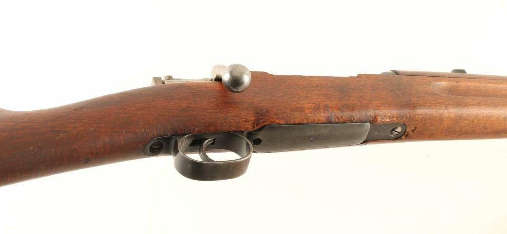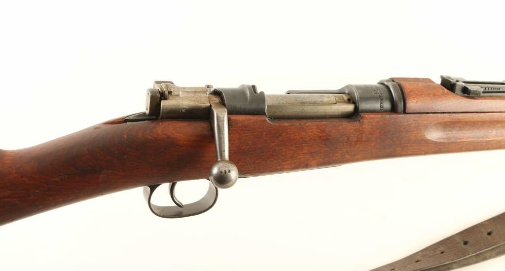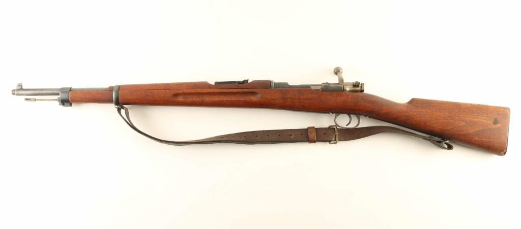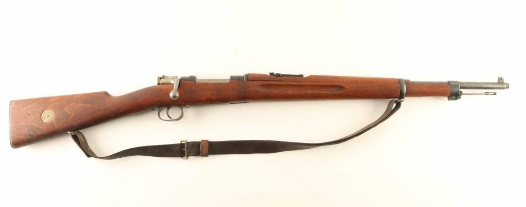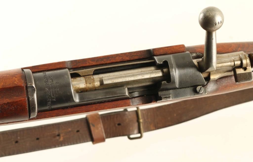 SN: 630955 Swedish military bolt action rifle imported by CAI, St Albans VT. Features 24" barrel with threaded muzzle, cleaning rod, bayonet lug, post front sight, tangent rear sight with flip-up ladder, bent bolt handle, manual safety, sling swivels. Bore is very good condition. Retains 75% blued finish, bare metal on edges and corners and where handled. Bolt is in the white. Stock is good to very good condition with dents and small gouges & nicks. Bolt parts numbered "955", stamped on body & safety, other bolt parts marked with electric pencil. Includes good condition leather sling. Condition is NRA Good++ *** C&R Firearm ***