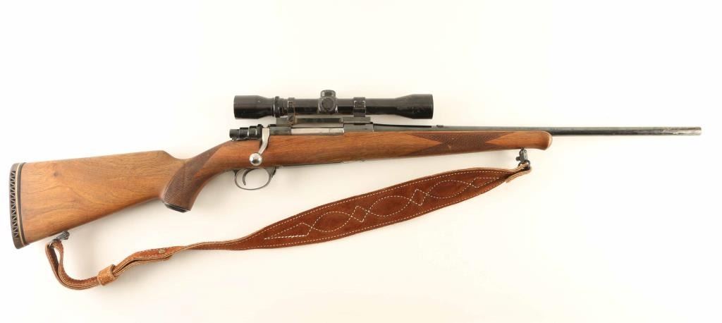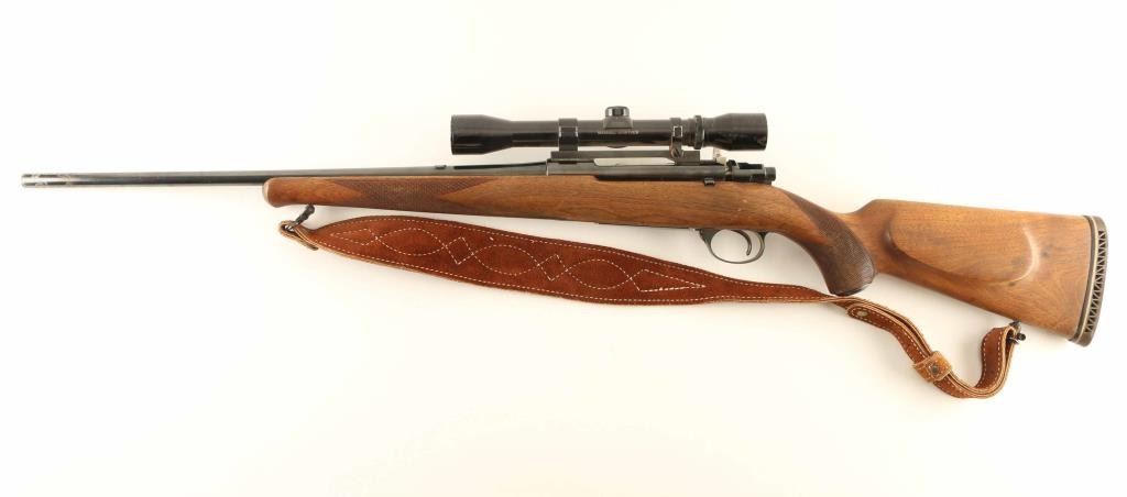 Swedish bolt action rifle (no importer marks observed) features blued finish, wood stock with checkered panels at forend and wrist, right handed cheek piece, thin ventilated rubber recoil pad, 21" barrel, no front sight, dovetail for rear sight filled with blank, Redfield one piece base and rings, hinged floorplate, manual safety, sling studs. Bore is very good condition. Retains 80% finish with visible large scrapes on barrel at muzzle, other signs of handling and use, small areas of thin patina forming on receiver sides. Wood is very good condition, oil finish is a bit dry, with scuffs and small dents. Recoil pad is a fair fit to stock, has gone hard. Mounts an overall good condition Bushnell Sportview 4x32mm scope with fine crosshair and clear view, many scuffs to scope body. Includes good condition brown leather sling. Condition is NRA Good ++ *** Modern Firearm ***