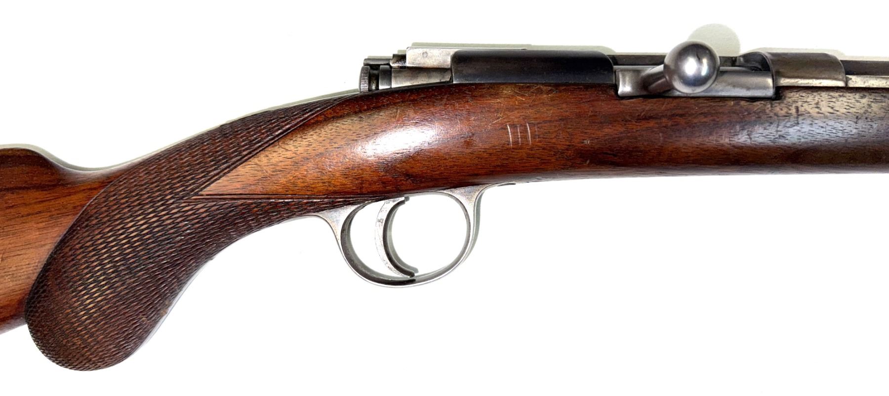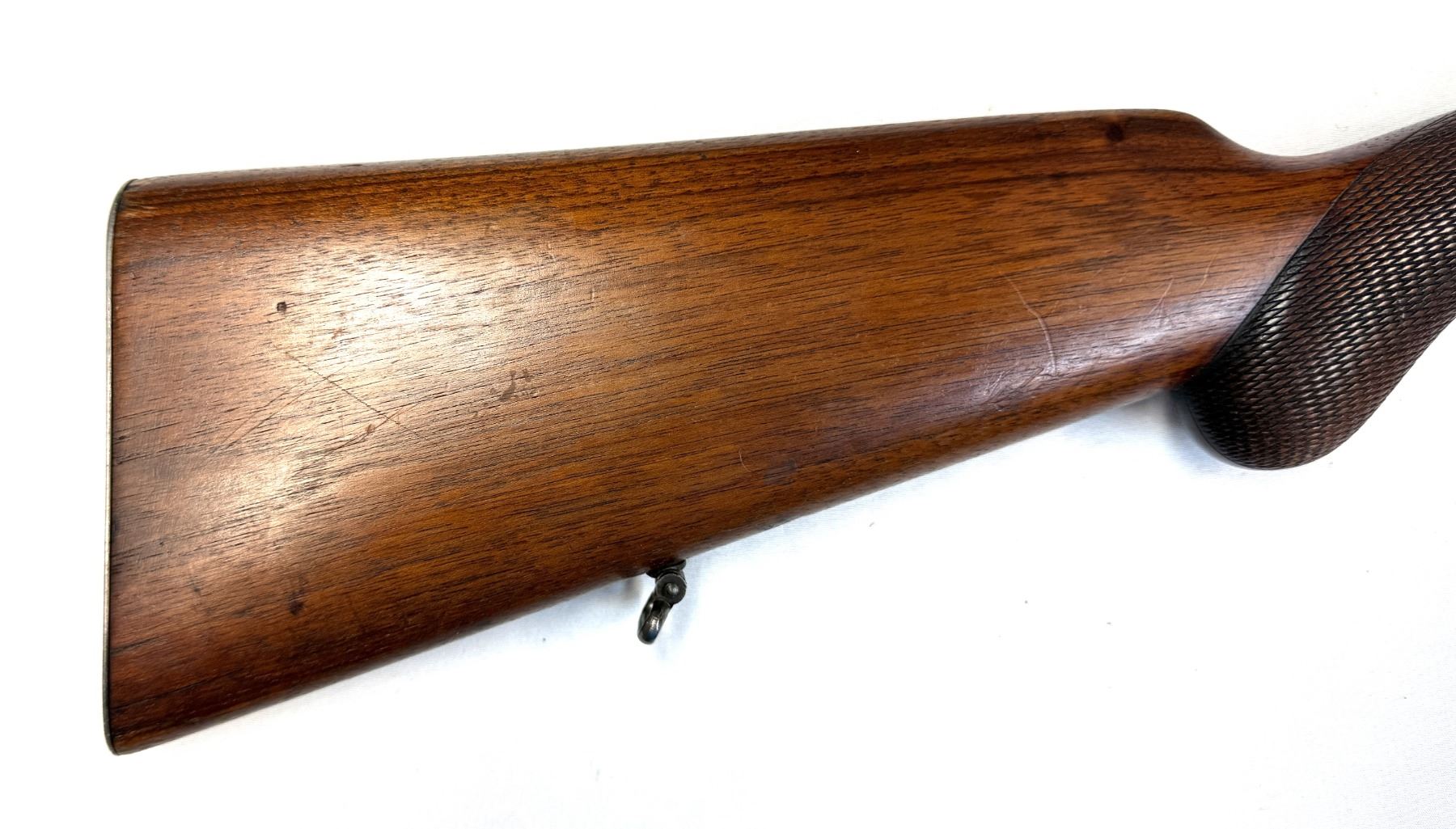 Fore End: Smooth walnut hardwood - checkered pistol grip - has sling swivels fore and aft.