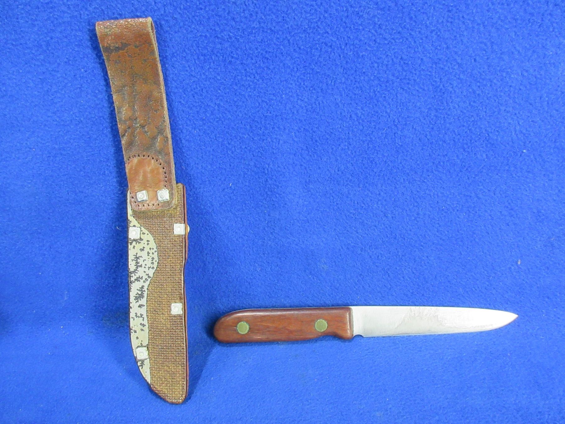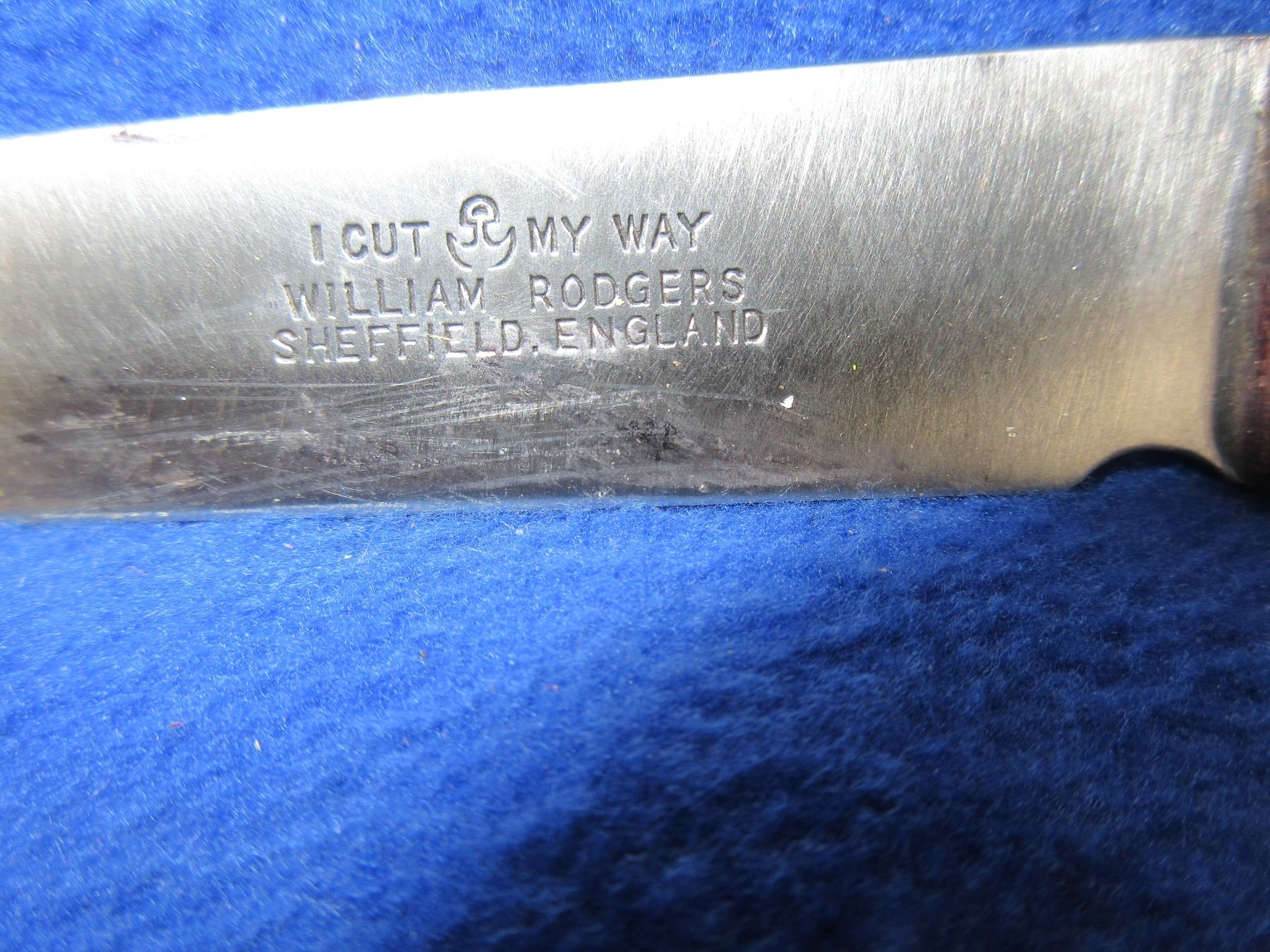 I Cut My Way Fixed Blade Knife with Wood & Leather Sheath - William Rodgers, Sheffield England - 4 1/2" Blade
