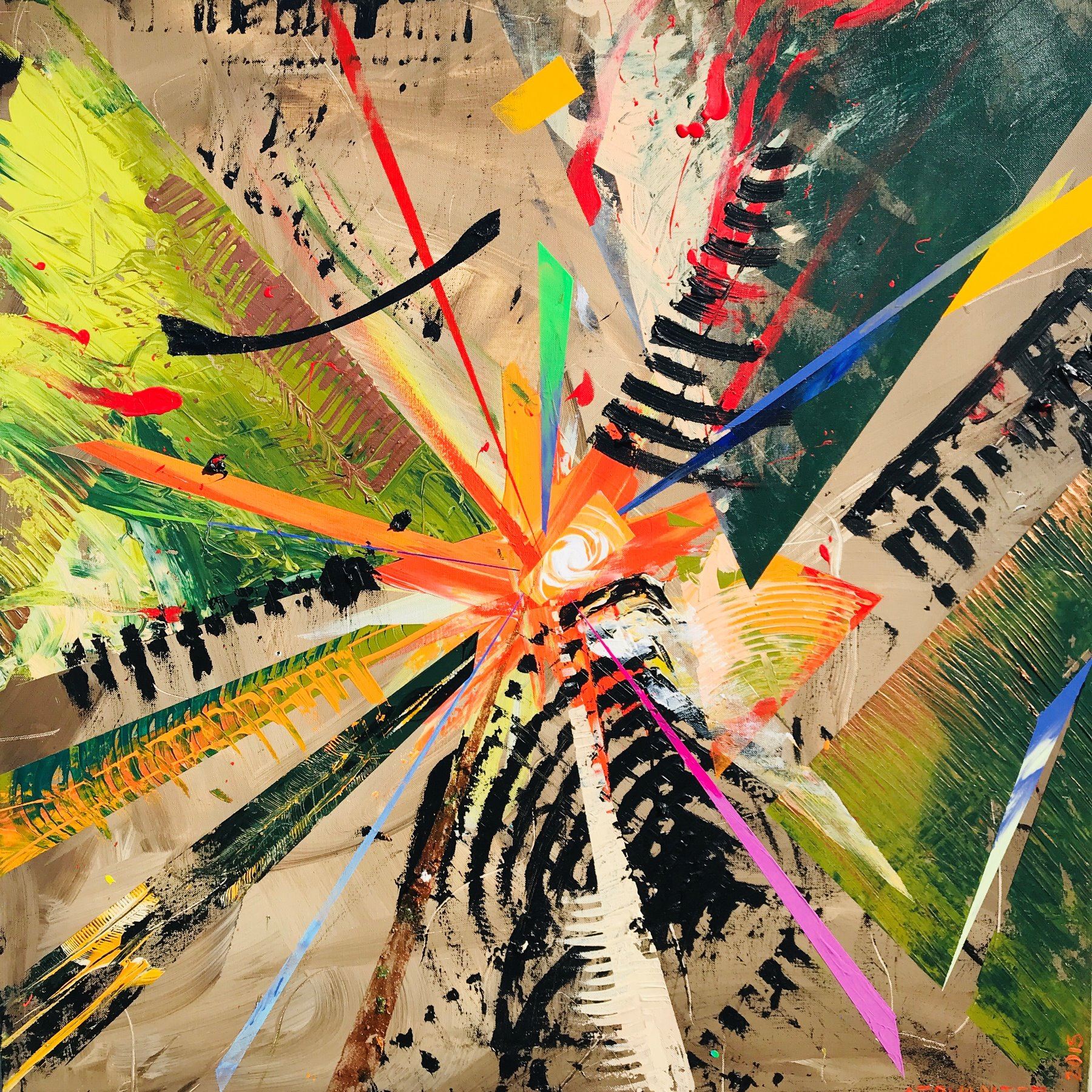I.E.D. (Improvised Explosive Device), acrylic on linen, 36”x36”x1.5” by artist Martin Cervantez.