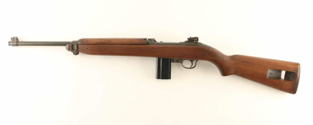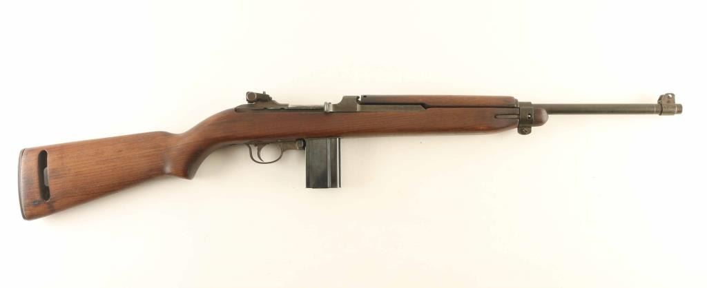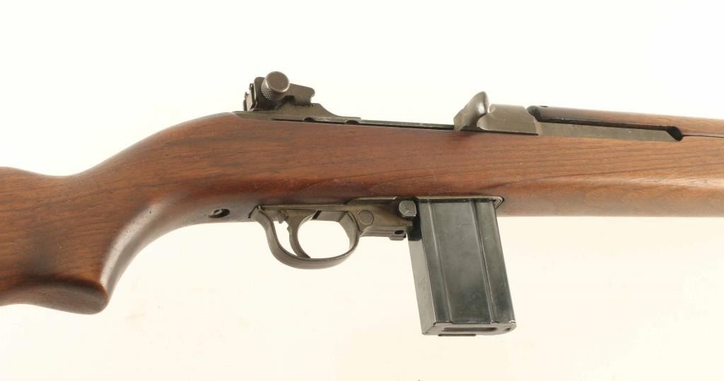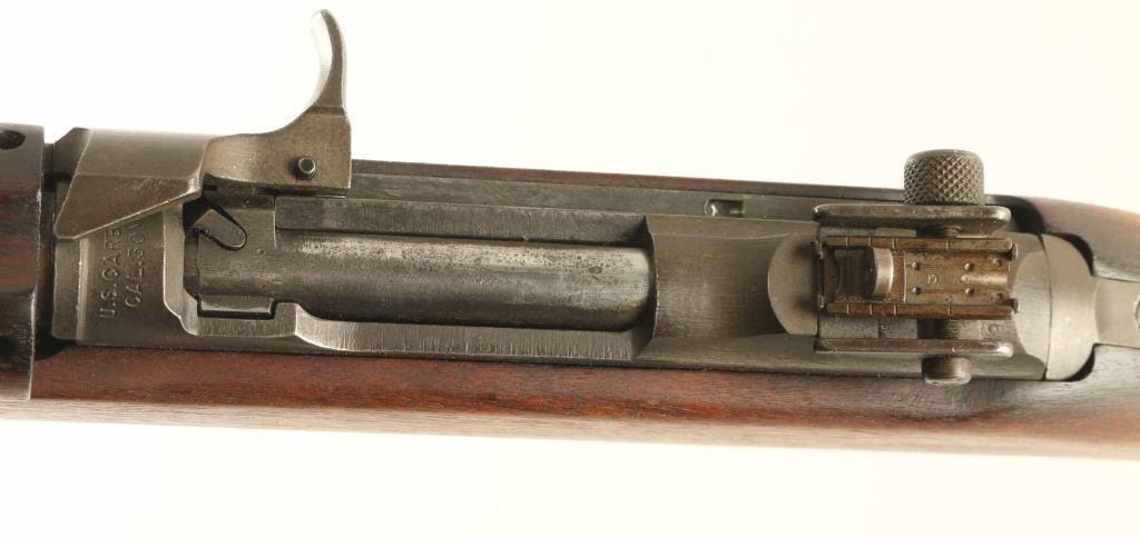 Semiautomatic carbine features adjustable sights, manual safety, front sling swivel and rear sling slot. Bore is very good to excellent condition. Metal retains 90% coverage of wartime grayish brown arsenal rework parkerizing, with bare metal showing in a few areas such as around front sight band. Stock is very good condition, handguard rattles slightly. Barrel band is earlier style without bayonet lug, rear sight is later slide type with windage knob. Bolt is later round style top. Safety is early push button style, mag release is M1 style. Stamped/brazed style trigger guard. Magazine is blued steel, very good condition marked " 1 / C-S'G' " Condition is Very Good *** C&R Firearm ***