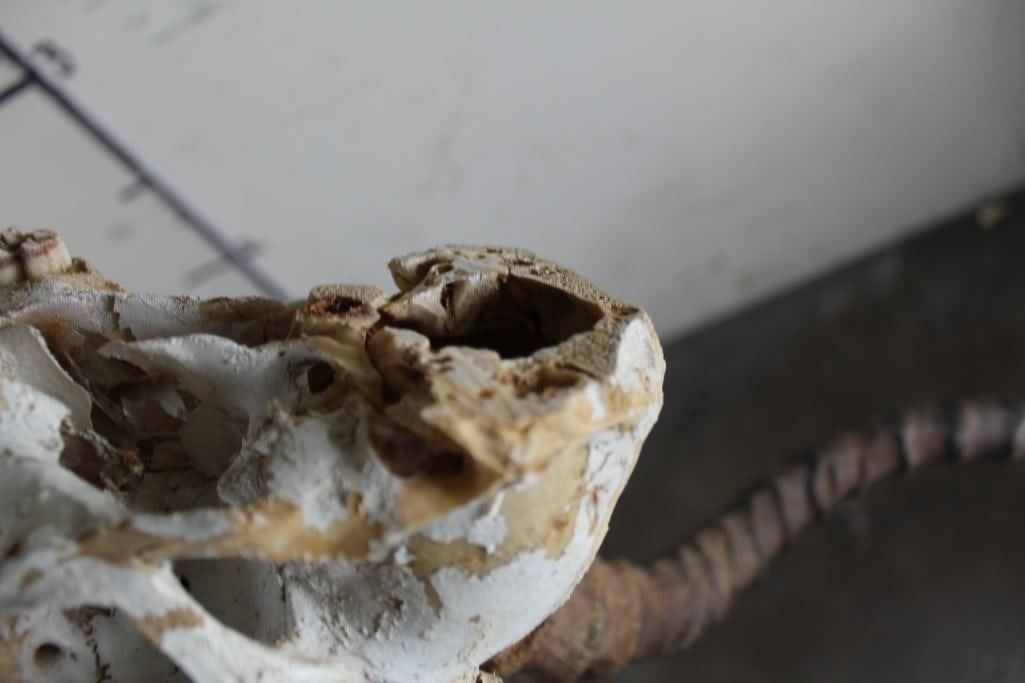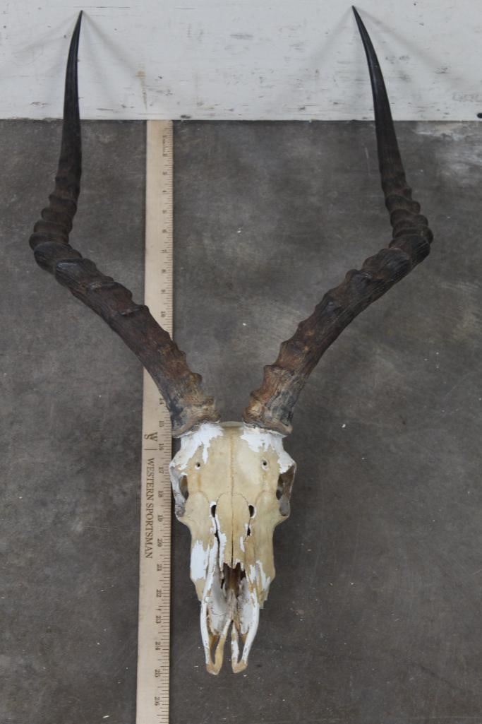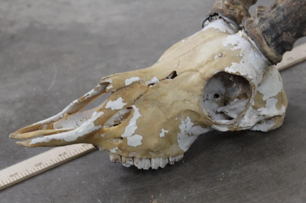 This IMPALA Skull has some nasal bones that feel loose. Some of the white paint is chipping. TAXIDERMY
