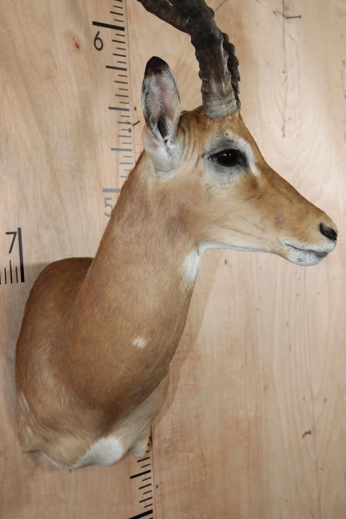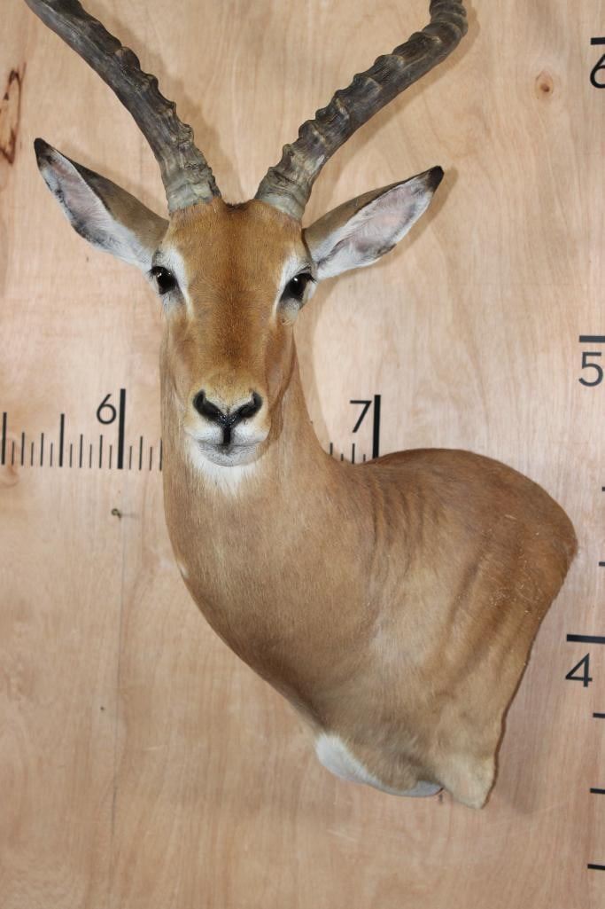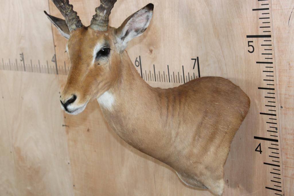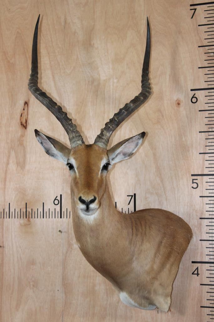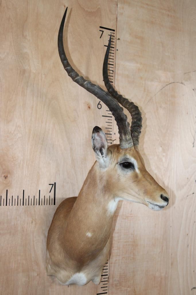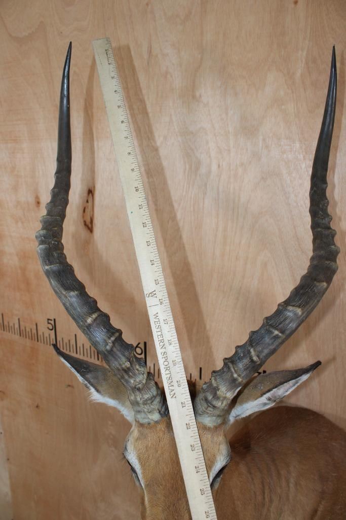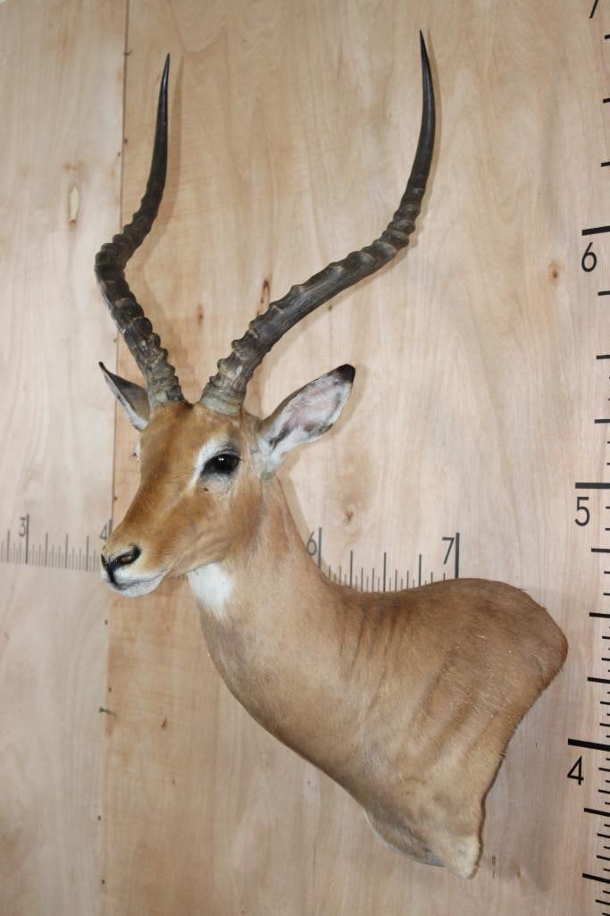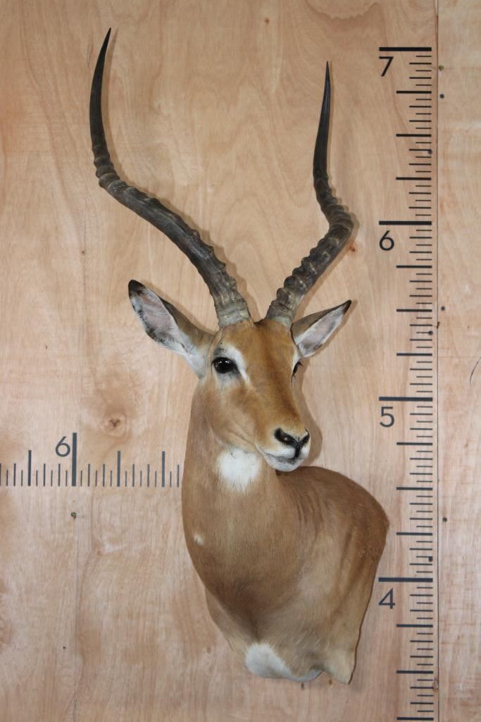 Very Nice, Clean, and Newer IMPALA Wall Pedestal Mount. The Left Horn measures 24.25" Long and the Right Horn measures 24 3/8" Long. It is in Very Good Condition. TAXIDERMY