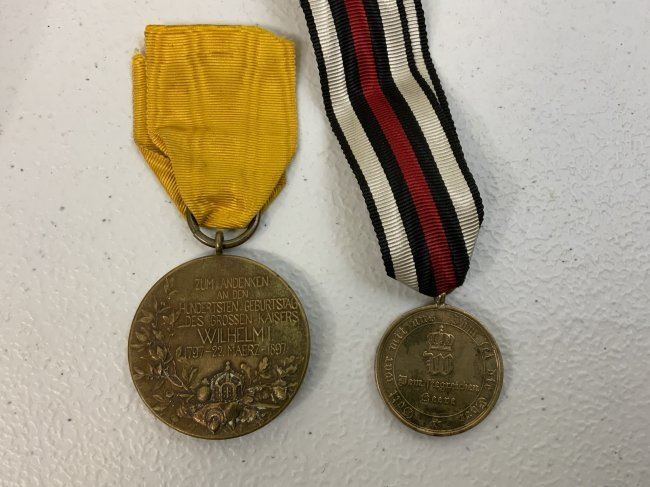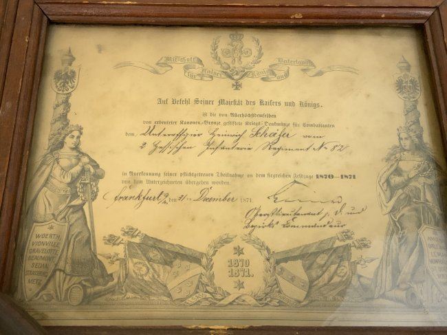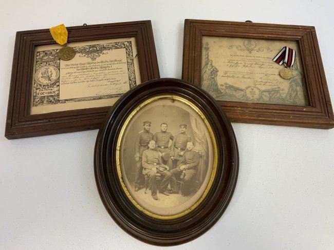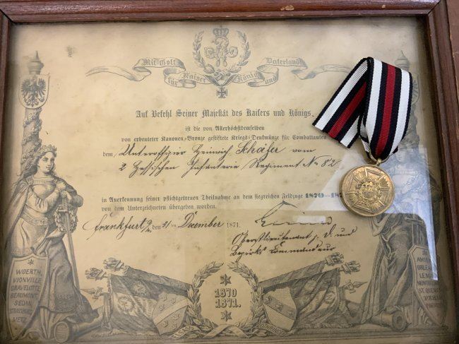 IMPERIAL GERMAN 1870-71 FRANCO PRUSSIAN WAR VETERAN RESEARCHED AWARD MEDALS WITH DOCUMENTS AND PERIOD FRAMED SOLDIERS PICTURE . RARE FIND. BOTH AWARDS COMES WITH FRAMED DOCUMENTS. VERY NICE GROUPING WITH RESEARCH.