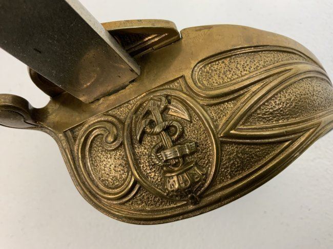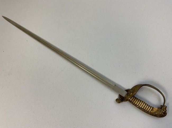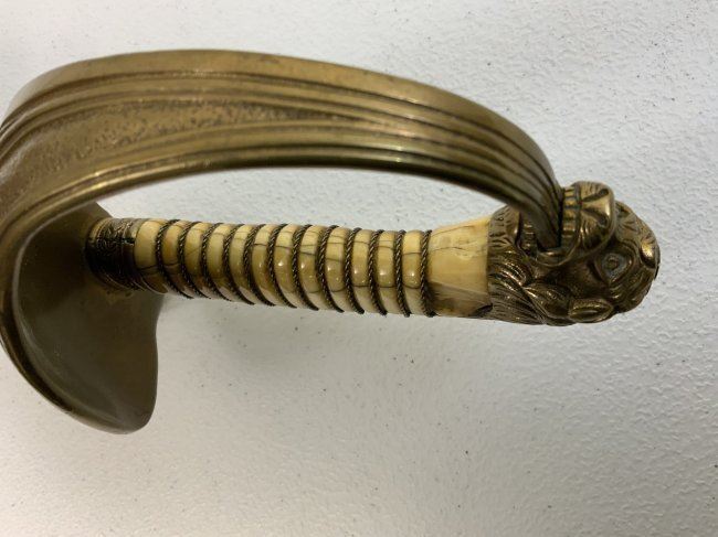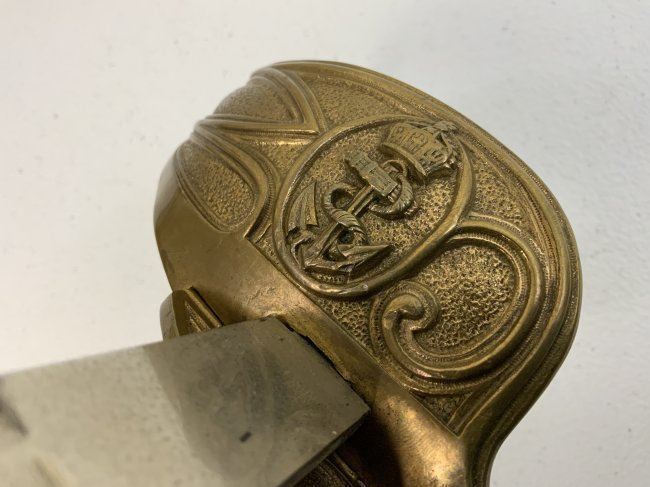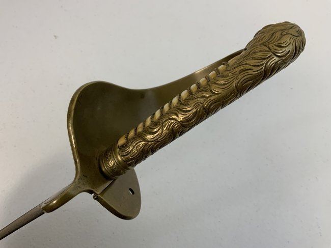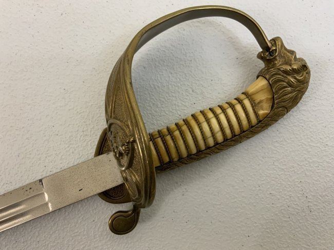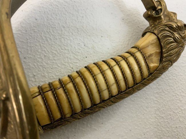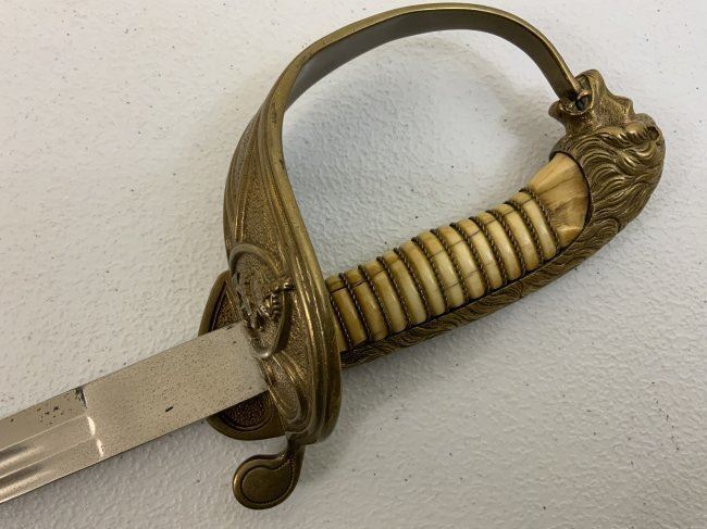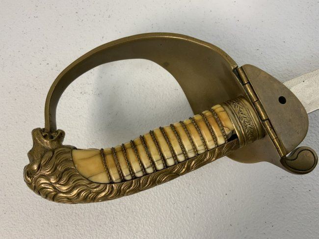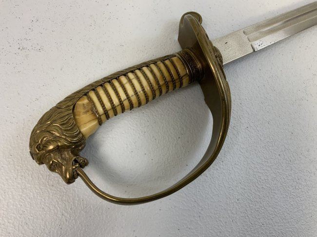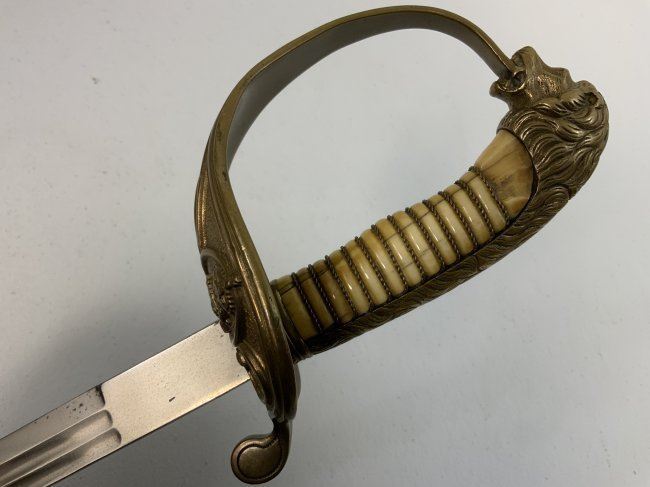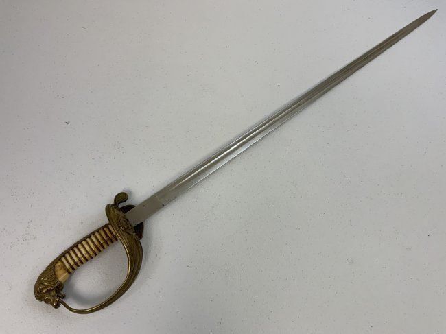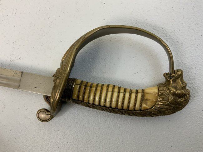 IMPERIAL GERMAN NAVY OFFICERS DRESS SWORD . NICE BRASS LION HEAD FITTINGS. EARLY SWORD . LATE 19th EARLY 20th CENTURY . PLAIN BLADE . NO MAKER MARKED. 36" LONG WITH 30" BLADE. GREAT OVERALL CONDITION FOR ITS AGE. NO SCABBARD .