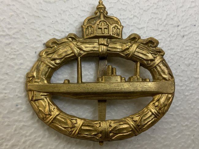 IMPERIAL GERMAN NAVY U-BOAT BADGE WWI .STAMPED BRASS. HOLLOW BACK . VERTICAL WIDE PIN. FINE CONDITION .