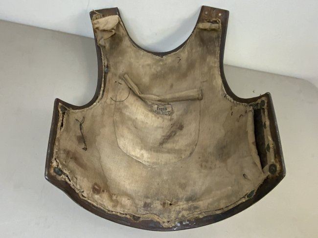 IMPERIAL GERMANY BAVARIAN CUIRASSIER ARMOR BREAST PLATE .NAMED AND REGIMENTAL MARKED . 1840-1875 . GREAT CONDITION FOR ITS AGE WITH VERY RARE INTERIOR FABRIC REMAINS . INSIDE CLOTH POCKET WITH OWNERS NAME LABEL INDICATION HIS CUIRASSIER REGIMENT. GREAT EXAMPLE !