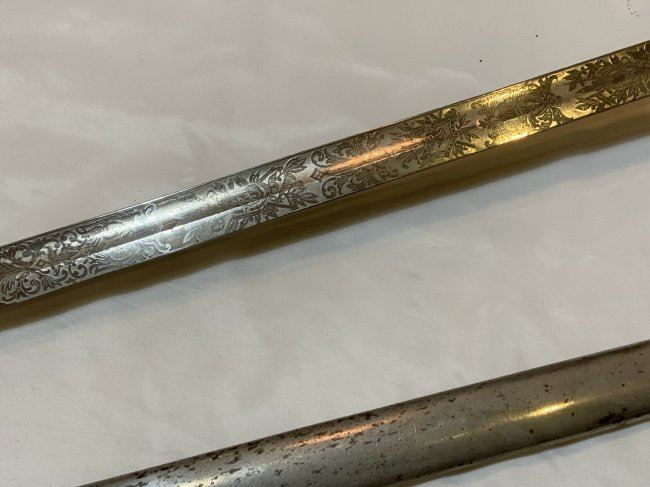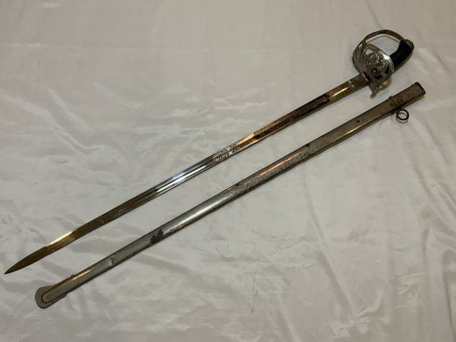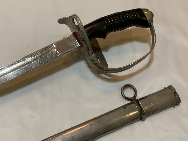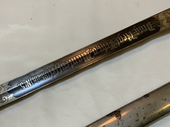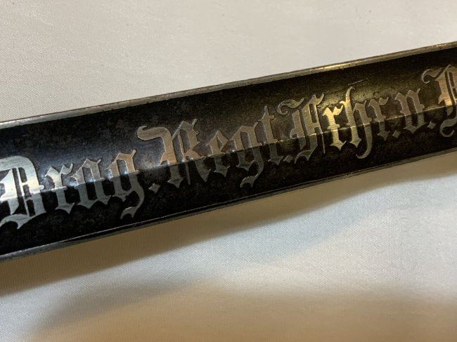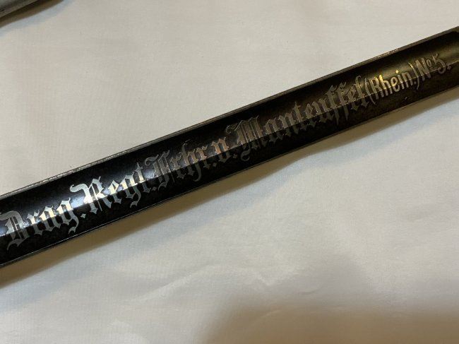 IMPERIAL GERMANY PRUSSIAN CAVALRY OFFICER SWORD ETCHED DRAGOON REGIMENT. NICE BLADE.