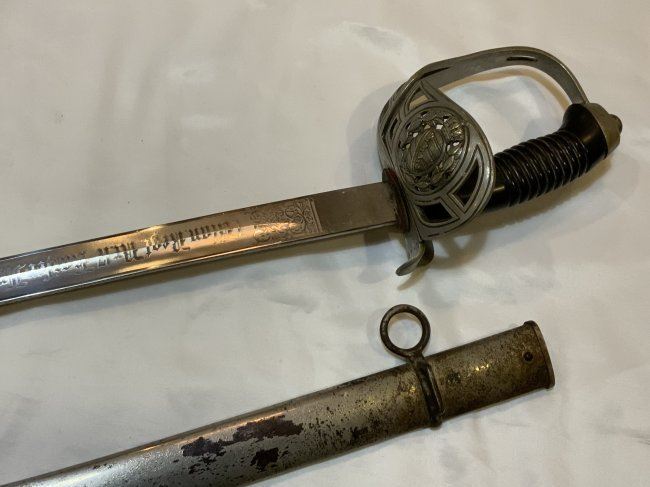 IMPERIAL GERMANY SAXON CAVALRY OFFICER SWORD ETCHED ULAN REGIMENT. NICE BLADE.
