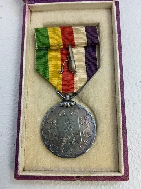 IMPERIAL JAPAN 1938 SHOWA ENTHRONEMENT MEDAL WITH MAROON CASE