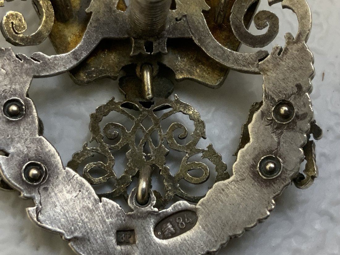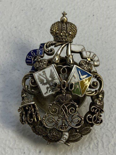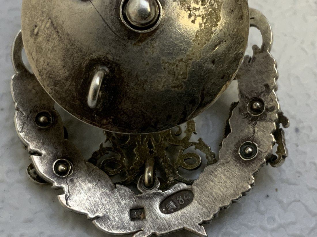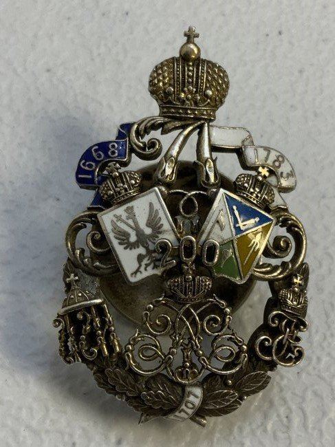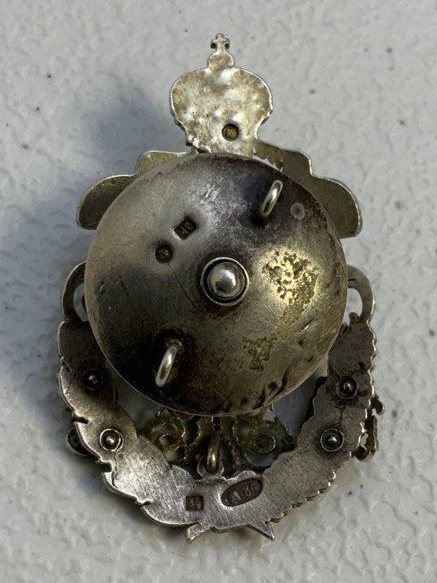 IMPERIAL RUSSIA GLUKHOV 6th DRAGOON EMPRESS CATRINE THE SECOND REGIMENT BADGE. BEAUTIFUL SILVER BADGE WITH ENAMELS. HALLMARKED WITH 84 SILVER IMPERIAL STAMPS. ORIGINAL SILVER SCREW PLATE. VERY RARE !