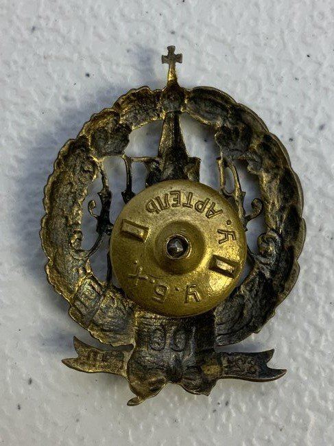 IMPERIAL RUSSIA GOROKHOV 182nd INFANTRY REGIMENT BADGE. BRASS BADGE WITH REPLACEMENT SCREW BACK PLATE.