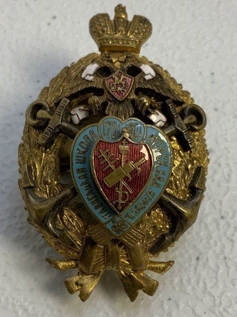IMPERIAL RUSSIA NAVY CADET CORPS NAVIGATOR SCHOOL ST. PETERSBURG BADGE. BEAUTIFUL BADGE WITH GREAT DETAILS . SILVER , GILT , ENAMELS. GREAT CONDITION AND VERY RARE BADGE . ORIGINAL SCREW BACK PLATE
