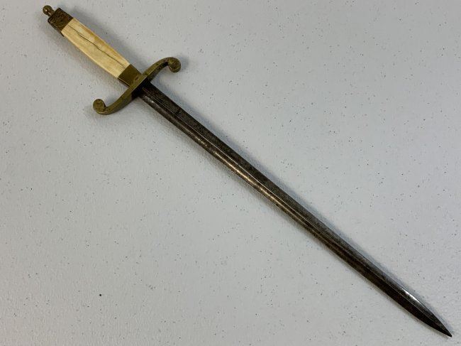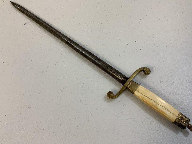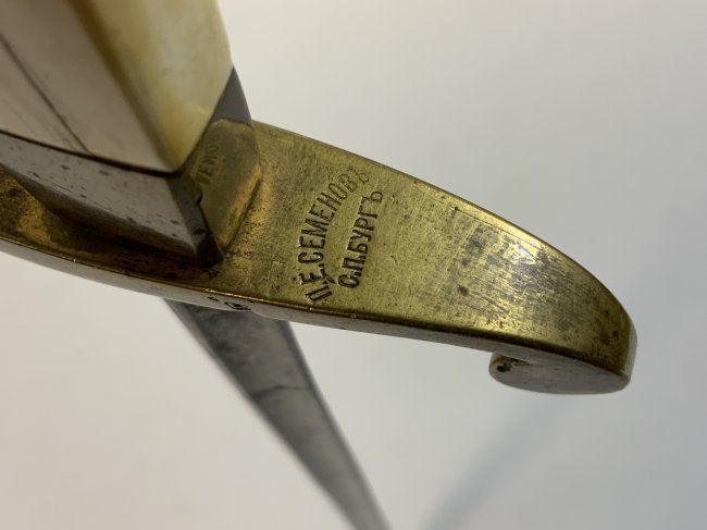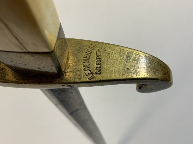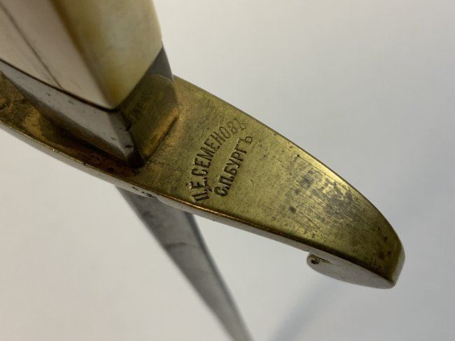 IMPERIAL RUSSIAN NAVY OFFICER DAGGER WWI BY SEMENOV ST.PETERBURG.RARE DAGGER WITH SPIKE SHAPE BLADE. MAKER STAMPED . BRASS FITTINGS . GOOD CONDITION OVERALL .