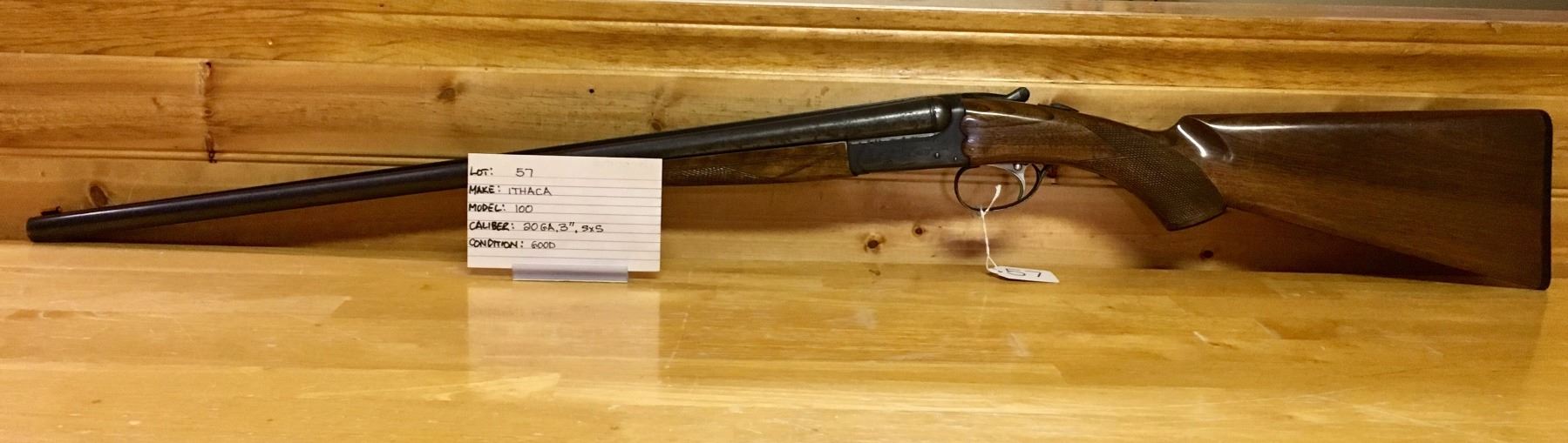LOT: 57 MAKE: ITHACA MODEL: 100 CALIBER: 20 GA, 3", SXS CONDITION: G S/N: 211472
