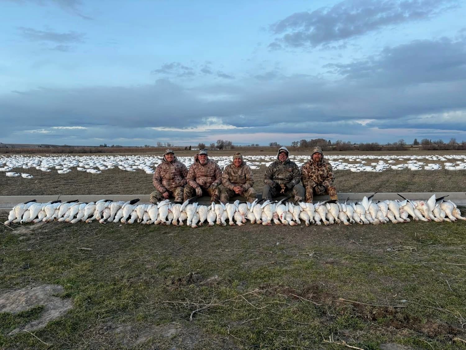 Snow Goose Hunt for 8 people for 2026 season. Hunt dates to be finalized with the outfitter for the 2026 Snow Goose season. Hunters will be responsible for providing their own guns, ammunition, licenses as well as transportation to and from the hunt location which will take place in Southwest Idaho. Kids possessing a legal hunting license are welcome as long as parent or guardian is there to supervise. This hunt is during the spring fly back hunt where electronic calls and extended magazines are allowed. 25 Bird Per Person limit *this number is based on current IDFG regulations*.