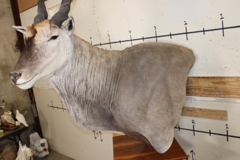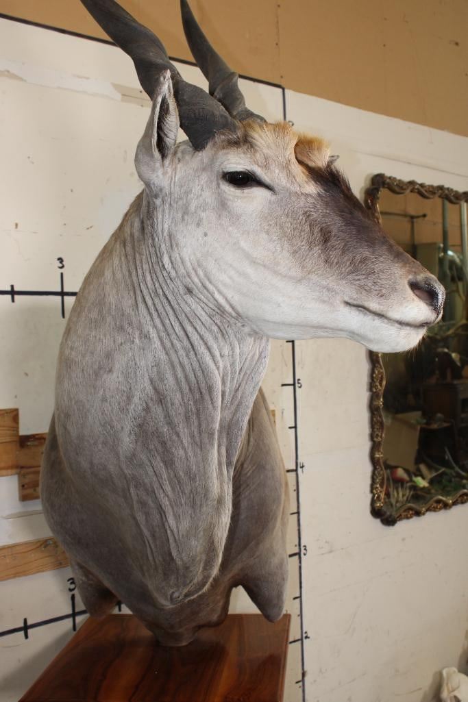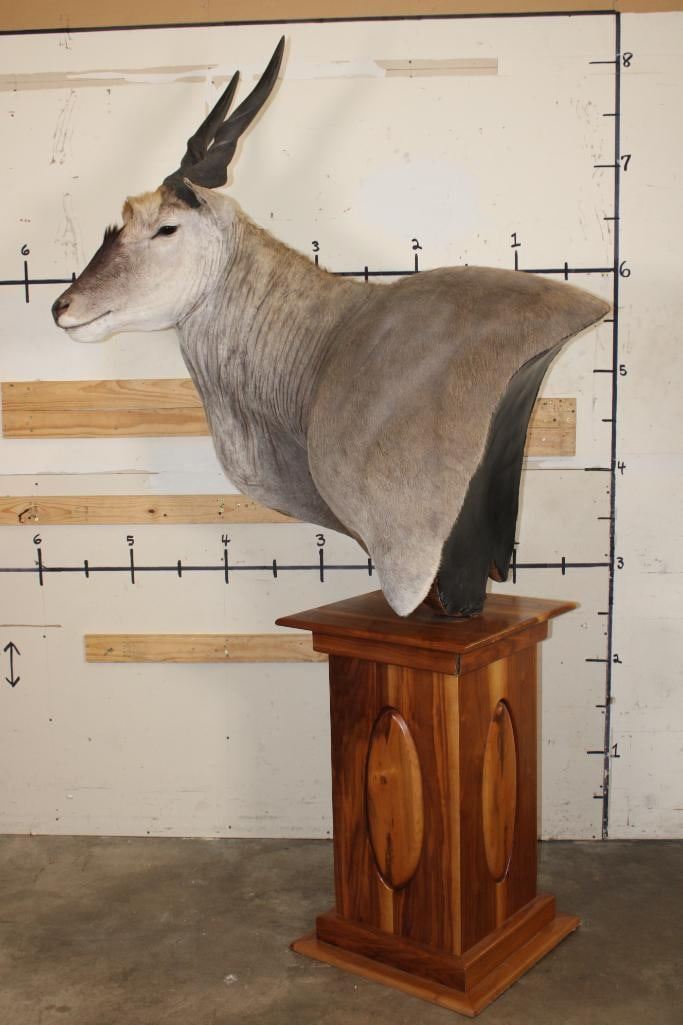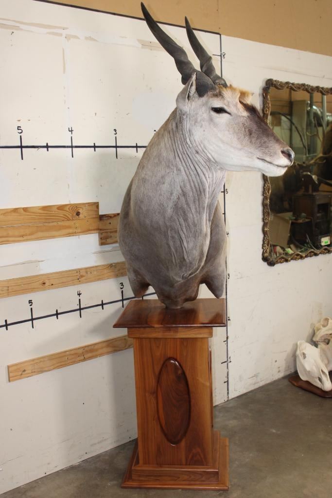 Incredible ELAND Pedestal Mount. It looks Brand New! This is a Very High Quality with mount on a Sheesham Wood Pedestal. The Total Mount Height is over 8' Tall. The Wood Pedestal approximately 3' Tall and the Eland is Removable. TAXIDERMY