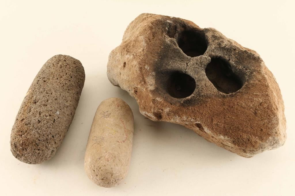 Large rock used for sharpening tools also included two stone hand tools.