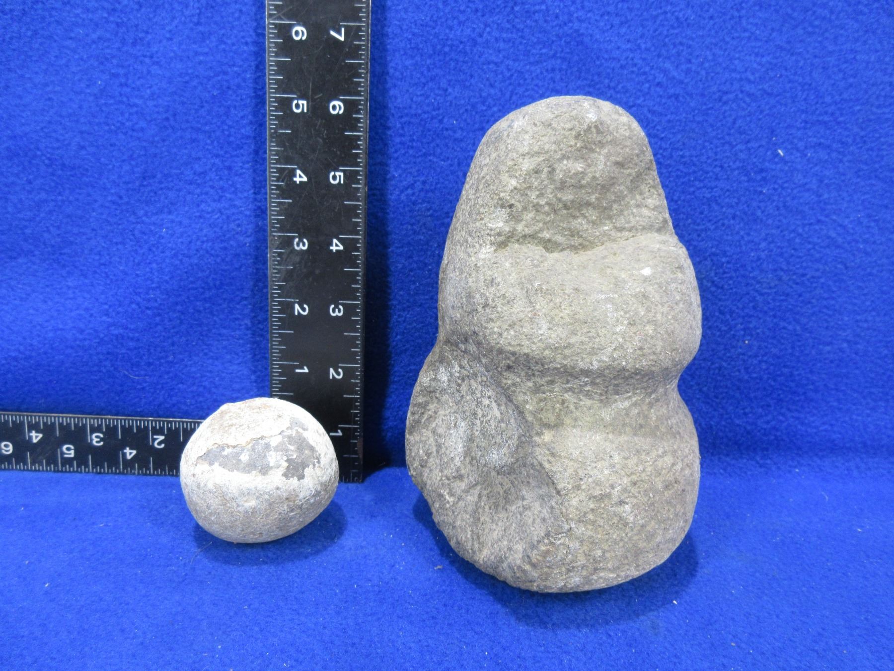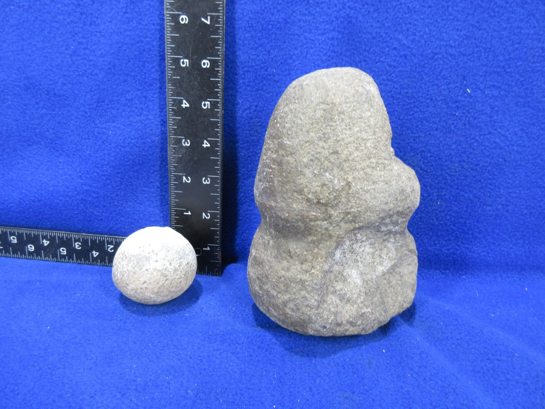 Indigenous Stone Grooved Maul & Round Throwing Ball - From Saskatchewan