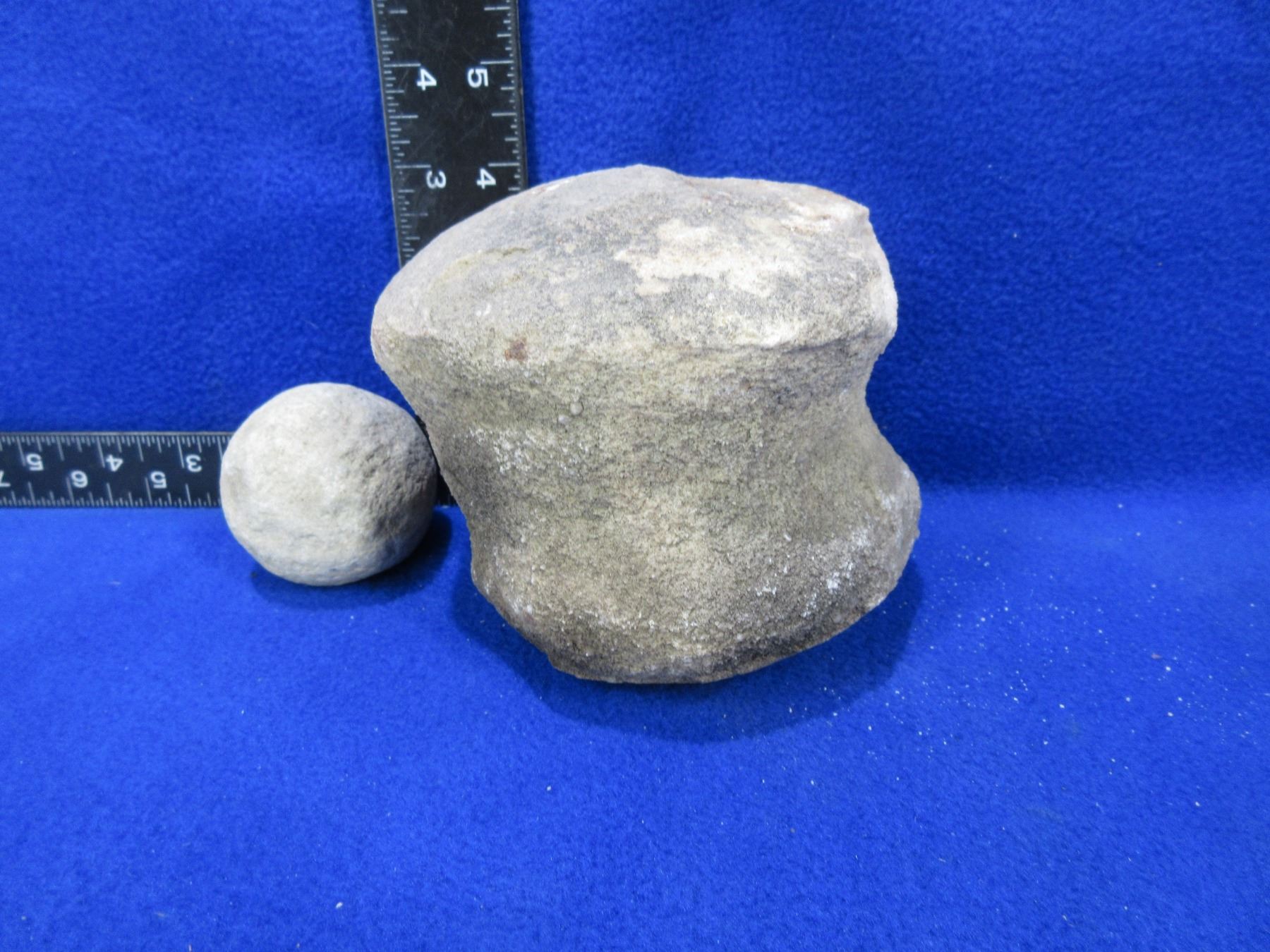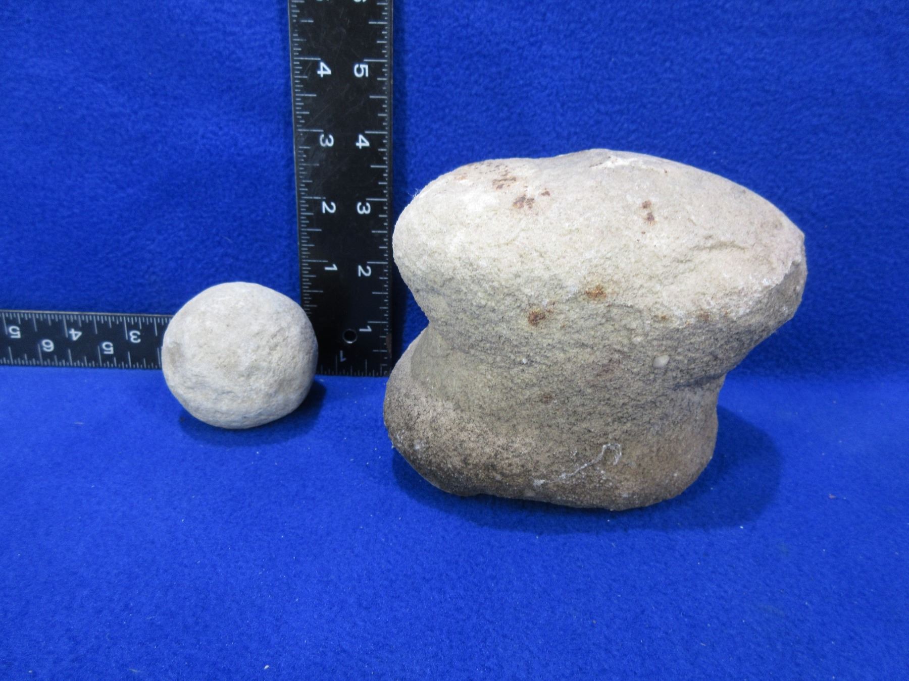 Indigenous Stone Grooved Maul & Round Throwing Ball - From Saskatchewan
